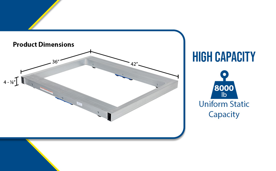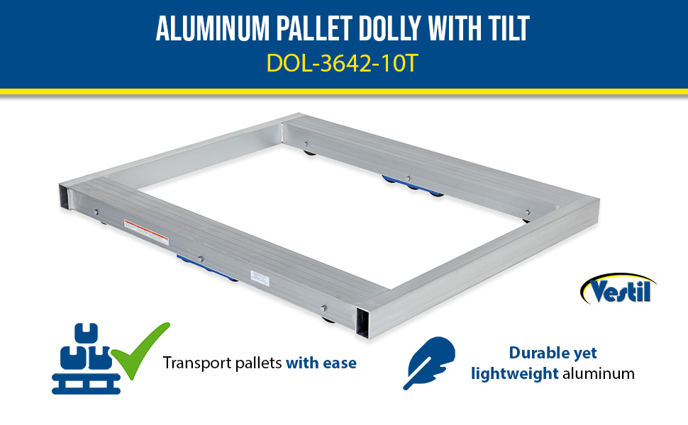 DOL-3642-10T DOL-3642-10TAluminum Pallet Dolly with Tilt 36 In. x 42 In. 8000 Lb. Capacity SilverUniform Static Capacity (lb.): 8,000