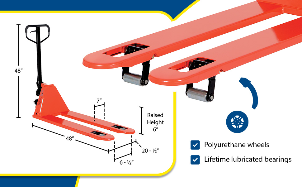 PM4-2048-LP PM4-2048-LPSteel Low Profile Pallet Truck 61 In. x 20-1/2 In. x 49 In. 4000 Lb. Capacity RedUniform Capacity (lb.): 4000