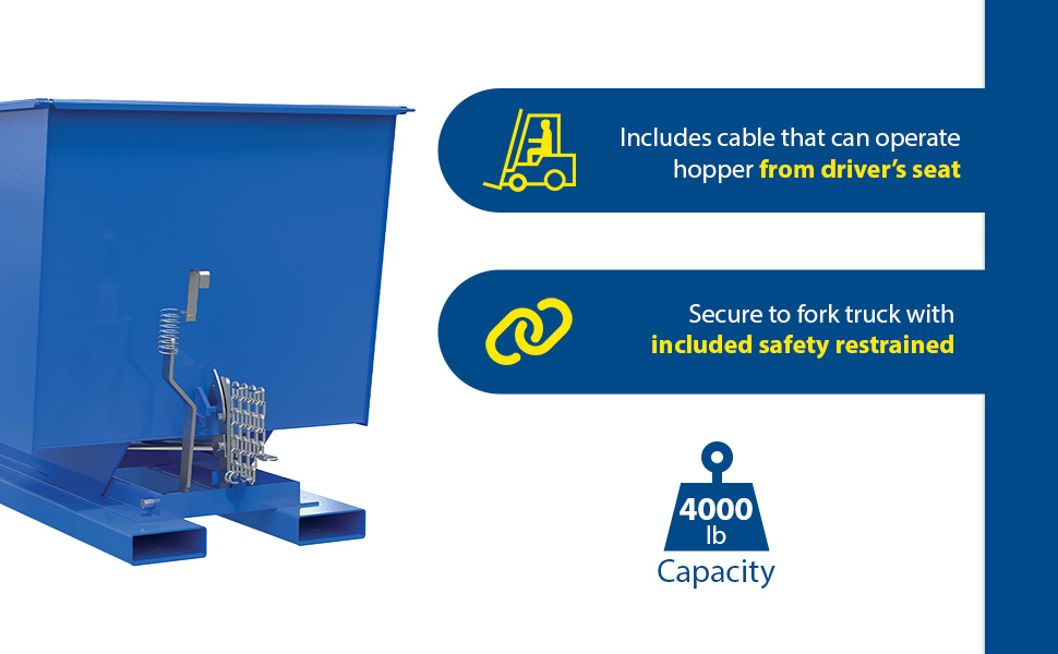| Steel Medium Duty Self Dumping Hopper 1 Cubic Yard 4000 Lb. Capacity Blue | Uniform Capacity (lb.): 4000 Steel (gauge): 10 | 545 |