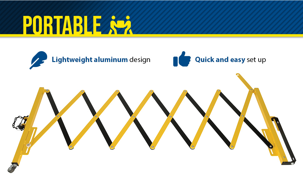 Designed to set up quickly and easily wherever and whenever they are needed. Ideal for preventing potential accidents. Lightweight design allows personnel to quickly retrieve the gate and limit access to unsafe areas. Smooth operating scissor action. Interlocking and nestable. Suffix -C features casters. Suffix W features one swivel caster with a wall/rack mounting kit.