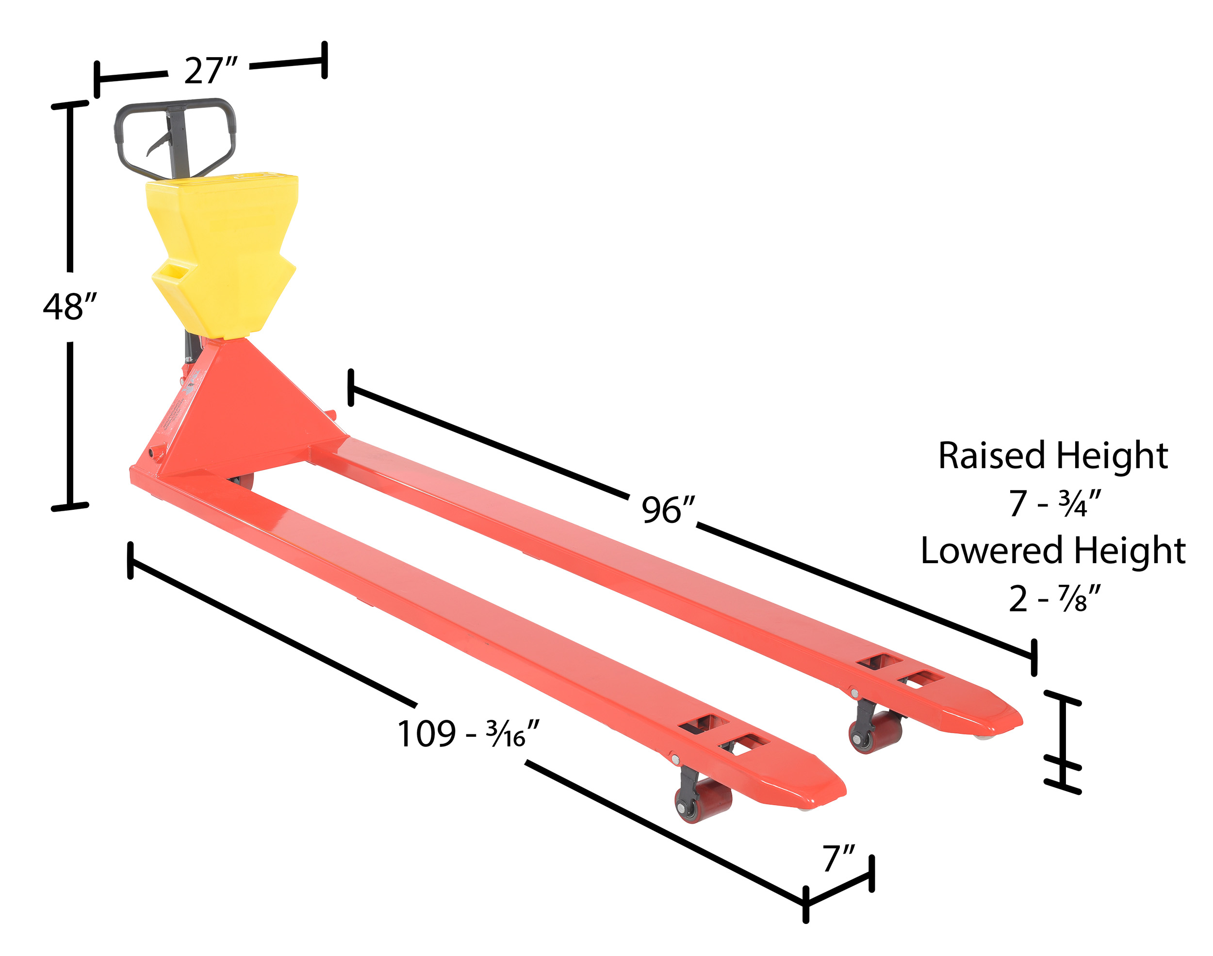 Steel/Plastic Pallet Truck 109-3/16 In. x 27 In. x 48 In. 4000 Lb. Capacity Red with Yellow P-Caddy