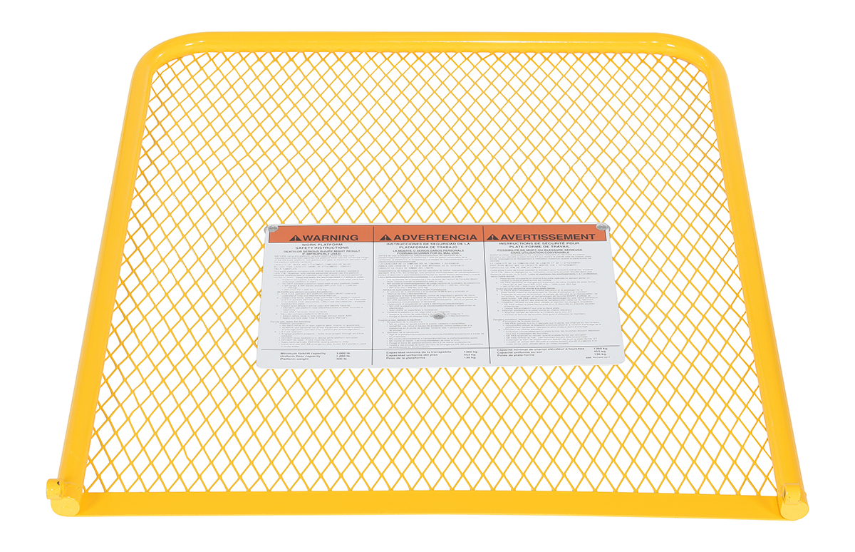The expanded metal back is a great addition to the work platform. The extended back adds extra security for the user to function comfortably. The extended back has a yellow finish for clear visibility. Not compatible with WP-ca.