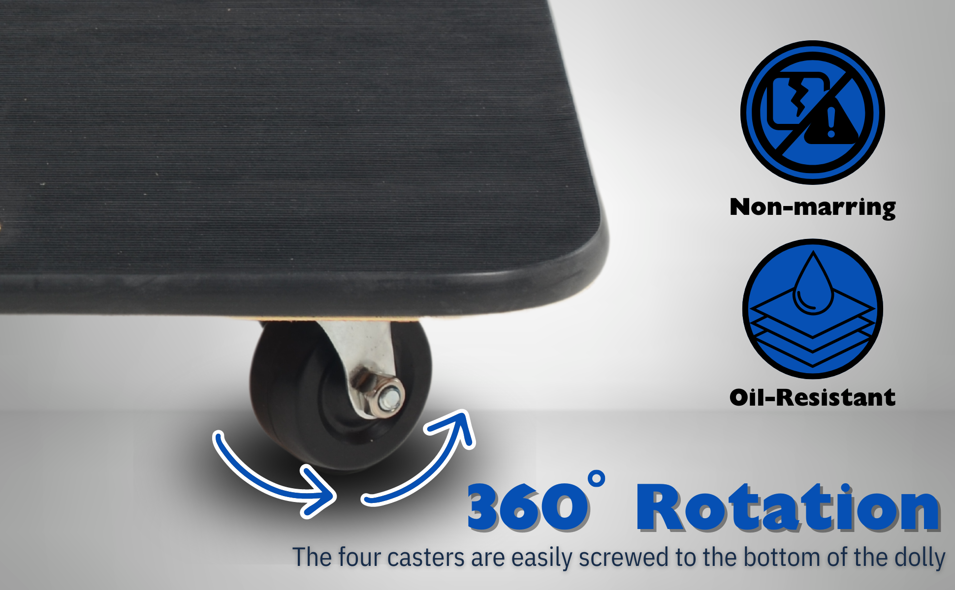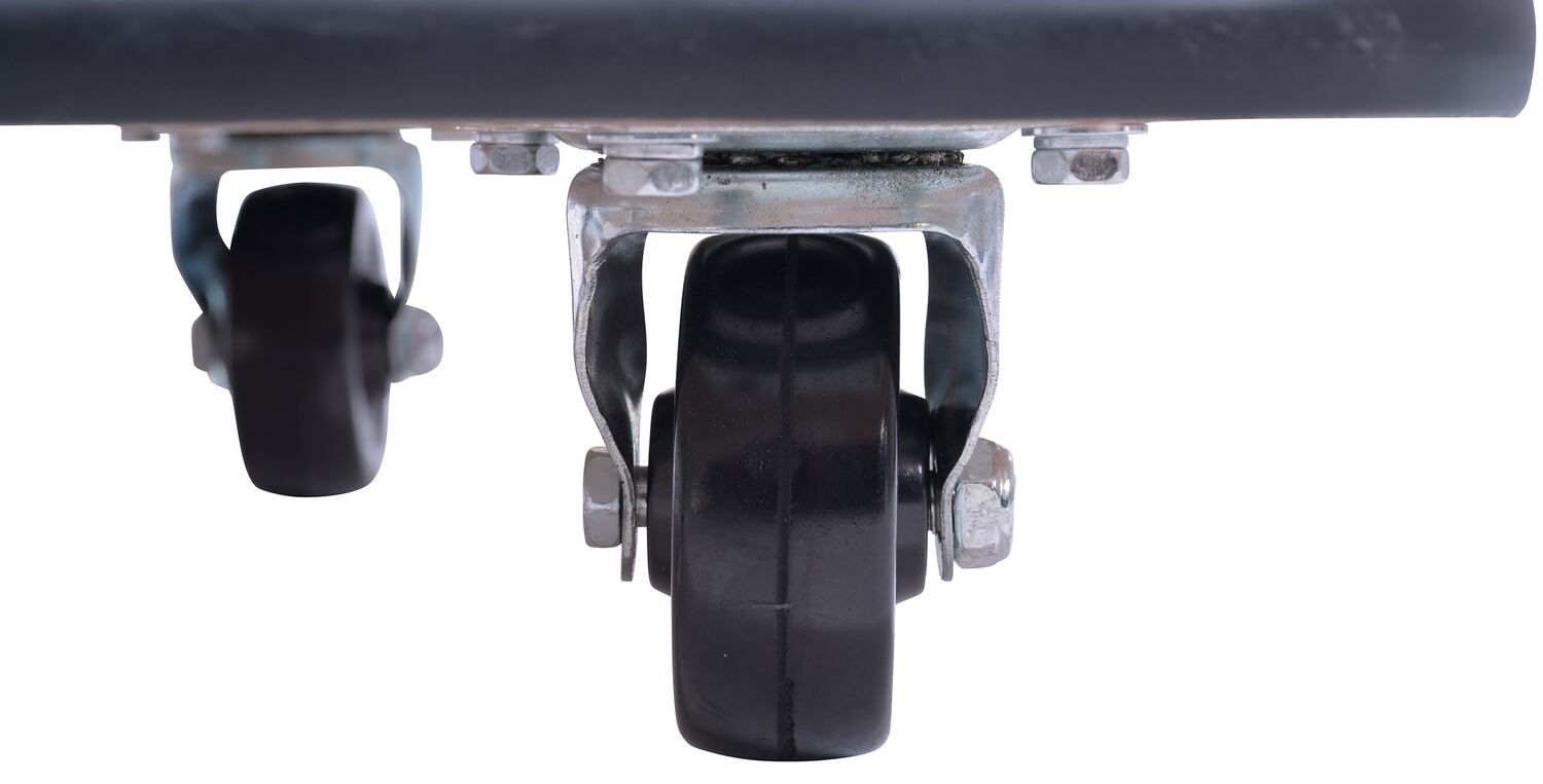 • Swivel wheels are non-marring and oil-resistant