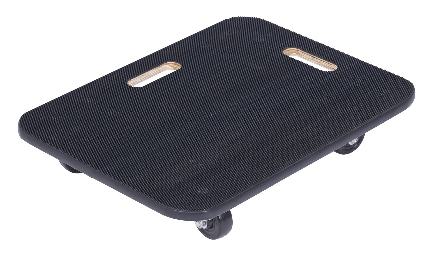 Fiberwood construction dollies feature a rubber padded surface and two hand holes to carry the unit. The PVC edge strip protects walls from scrapes. Units roll on four swivel wheels which are non-marring and oil-resistant. Casters may not be attached for shipping purposes.