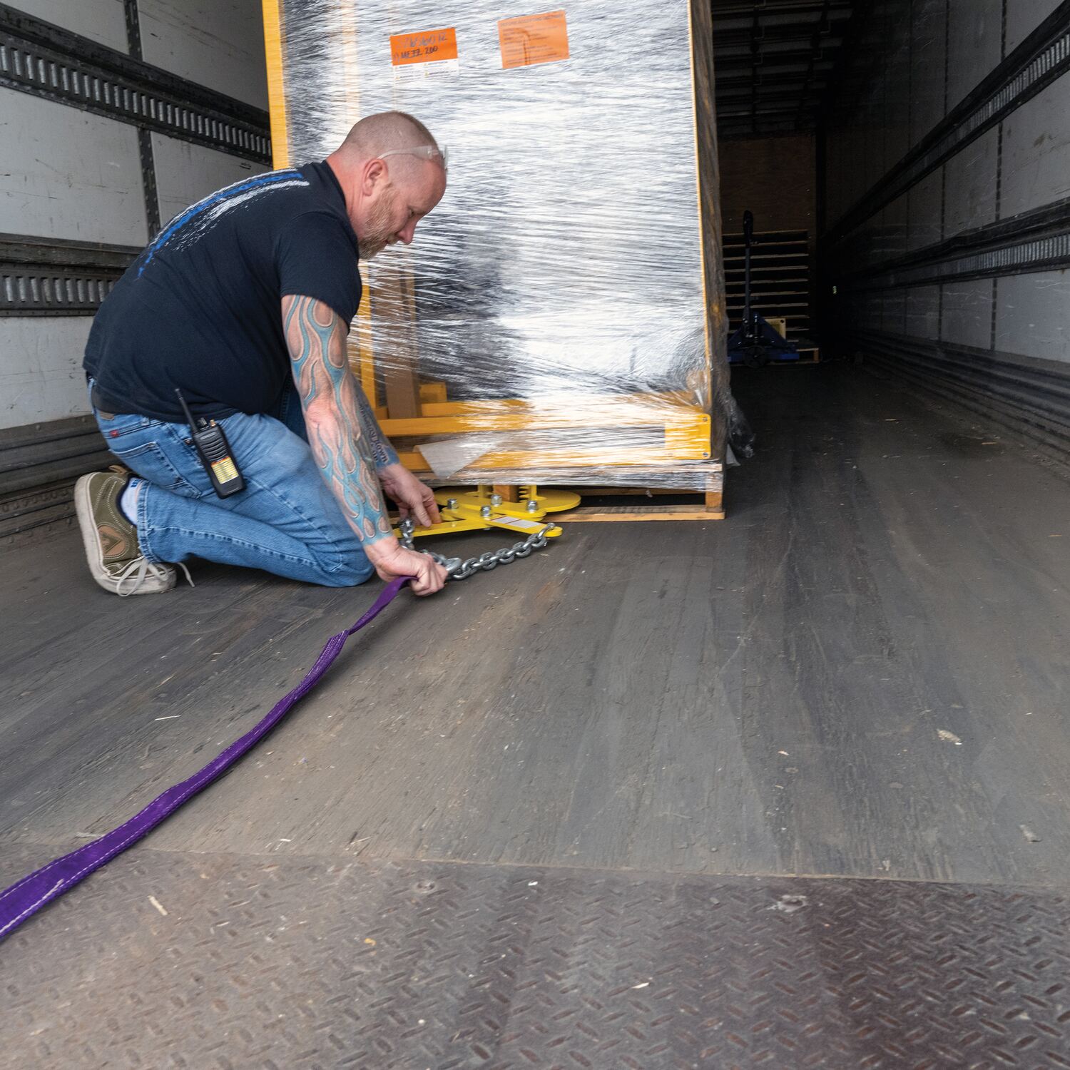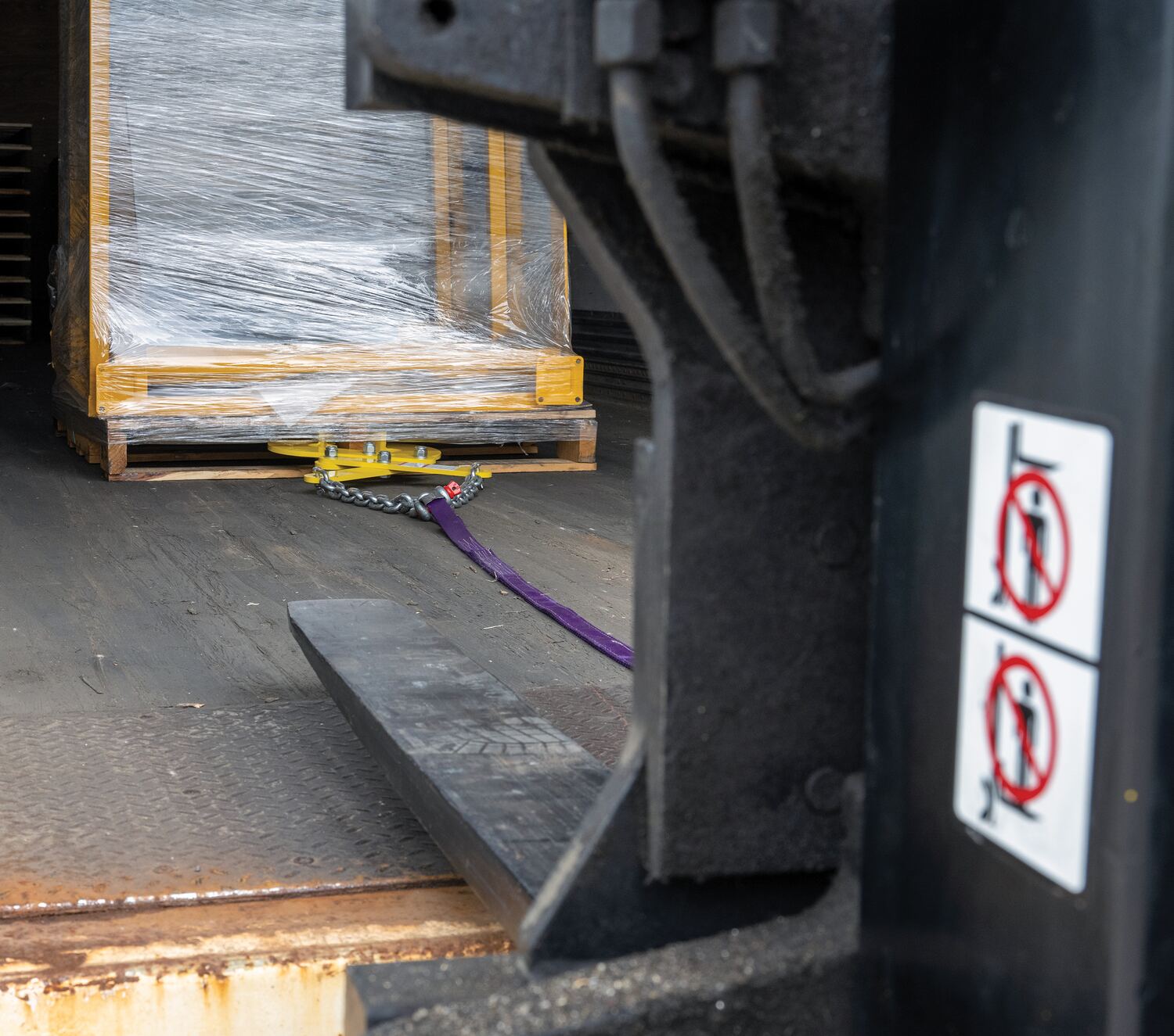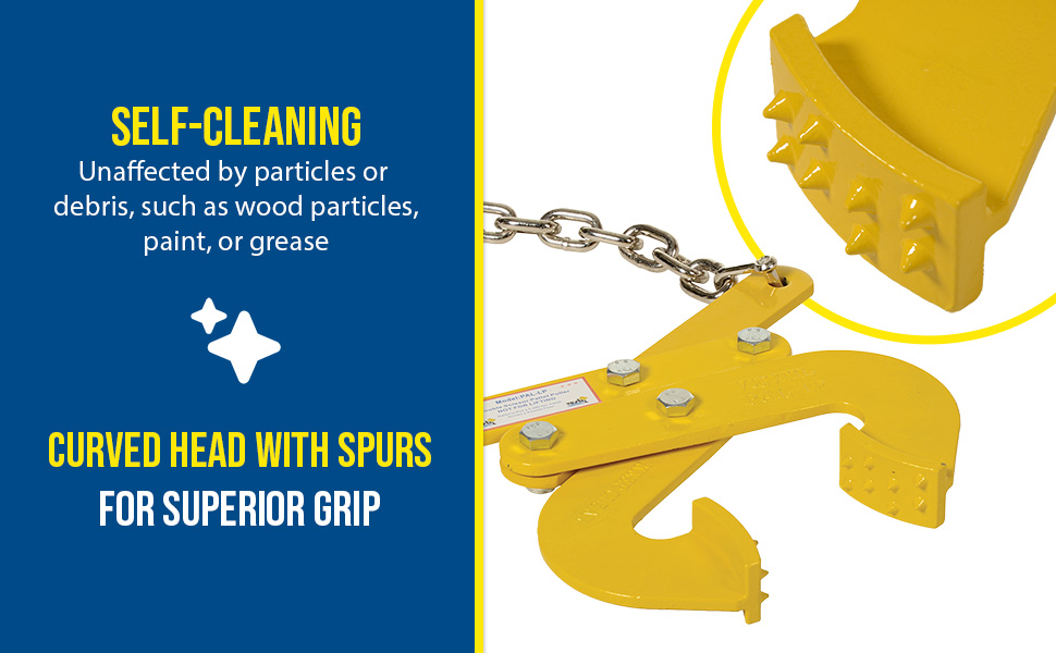 Pallet pullers are used to pull pallets from the rear of trailers, to the front, for easy fork truck access. Rugged steel construction. Heads are self-cleaning and unaffected by wood particles, paint or grease. Pallet pullers and chains are NOT designed for lifting.