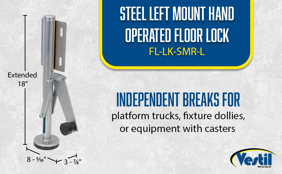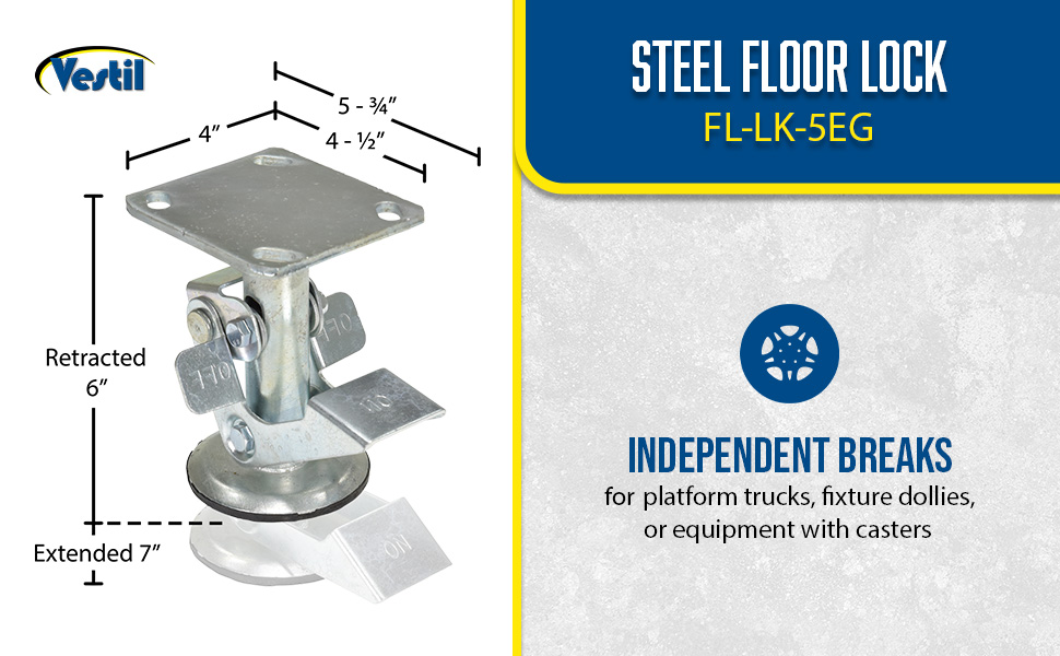 | Steel Top Mount Floor Lock 4-7/8 to 5-5/8 In. Height Silver 1,200 Lb. Capacity | Caster Diameter (in.): 4 Mount Height (in.): 5-5/8 | 4 |
