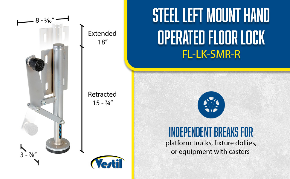 | Stainless Steel Left Mount Hand Operated Floor Lock 10 to 12 In. Height Silver | Mounting Height (in.): 10 to 13-7/8 Retracted Height on Bottom Mounting Hole (in.): 10 | 9 |