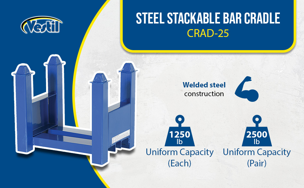 CRAD-25 CRAD-25Steel Stackable Bar Cradle 16 In. 2500 Lb. Capacity BlueUniform Capacity Each (lb.): 1,250