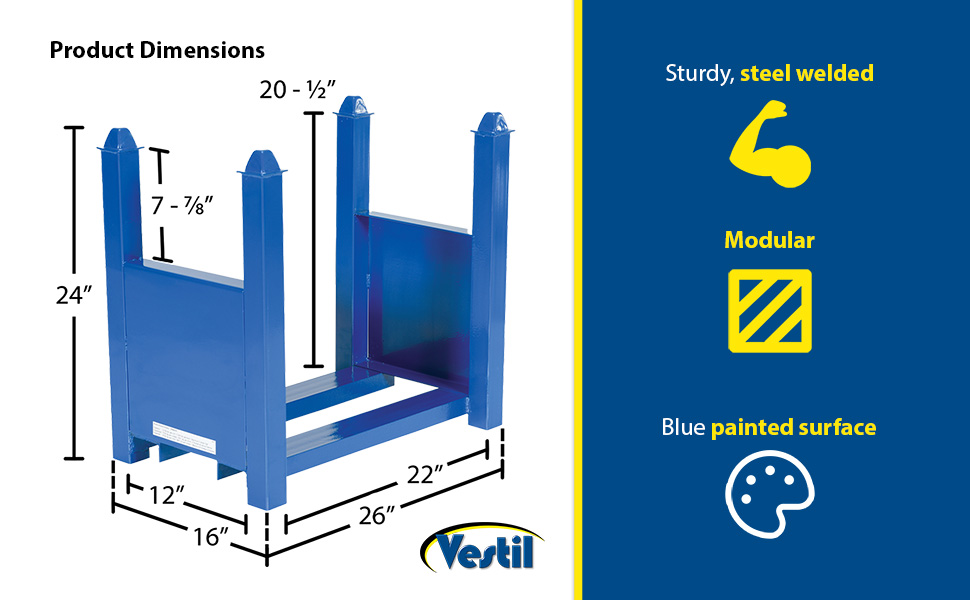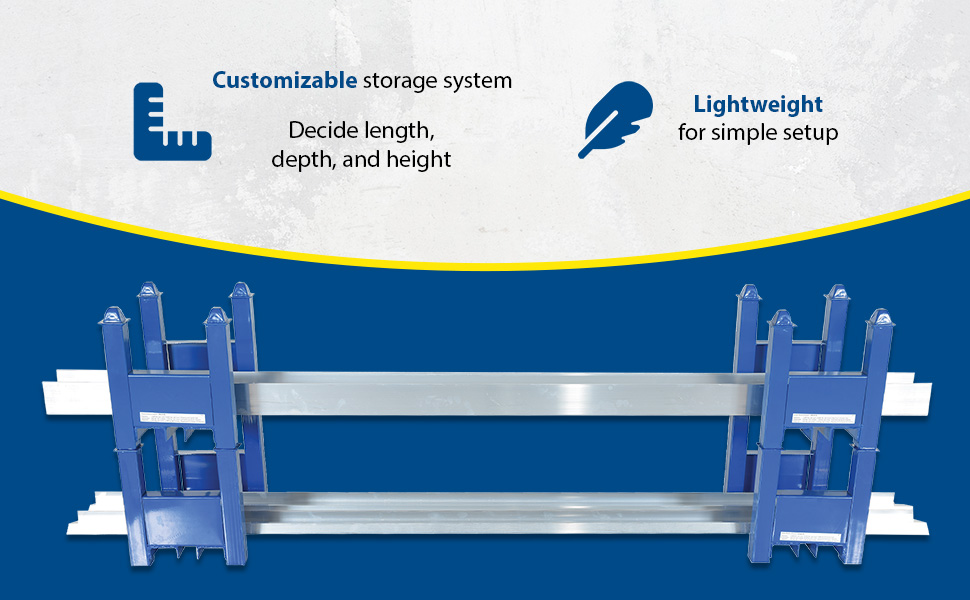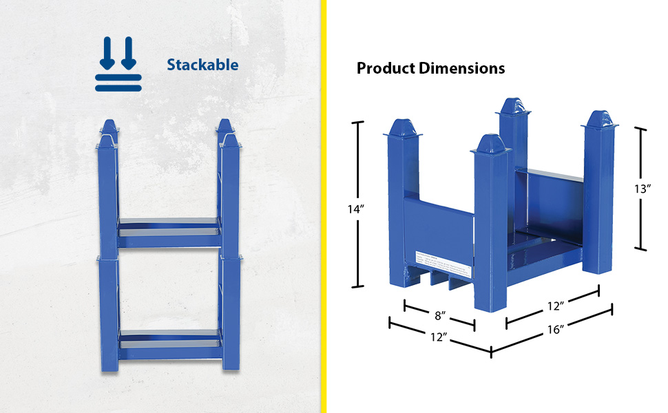 These sturdy, welded steel racks are strong enough to handle heavy loads yet light enough to be set up by one person. Stackable up to five units high. Allows for custom design by choosing length, depth and height of individual storage systems. Welded steel construction with blue painted surface. Units are sold each.