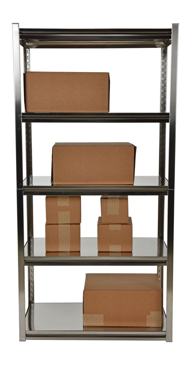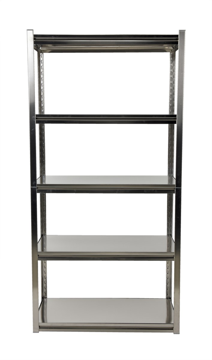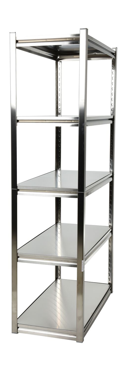 High quality stainless steel solid shelving is made of type 304 stainless steel construction with brushed finish. Each model includes five (5) adjustable shelves with a uniform capacity of 600 lbs. per shelf. The 18 gauge thick shelves are adjustable in 1-1/2" teardrop increments. Two-piece corner posts design includes plastic connectors. Shipped knock-down, easy assembly.