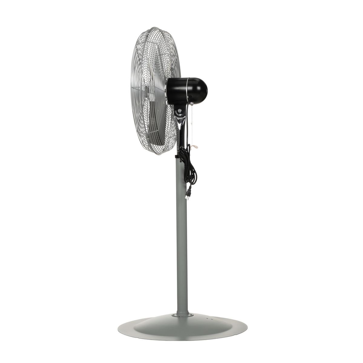 Two speed, 115V, 1 phase, ball bearing, totally enclosed and permanently lubricated Industrial Duty Circulator Fan. Pull chain switch with a 12 foot long cord and an SJT type 3 conductor. Meets OSHA standards and is ETL C/US listed. 1/4 HP electric motor.