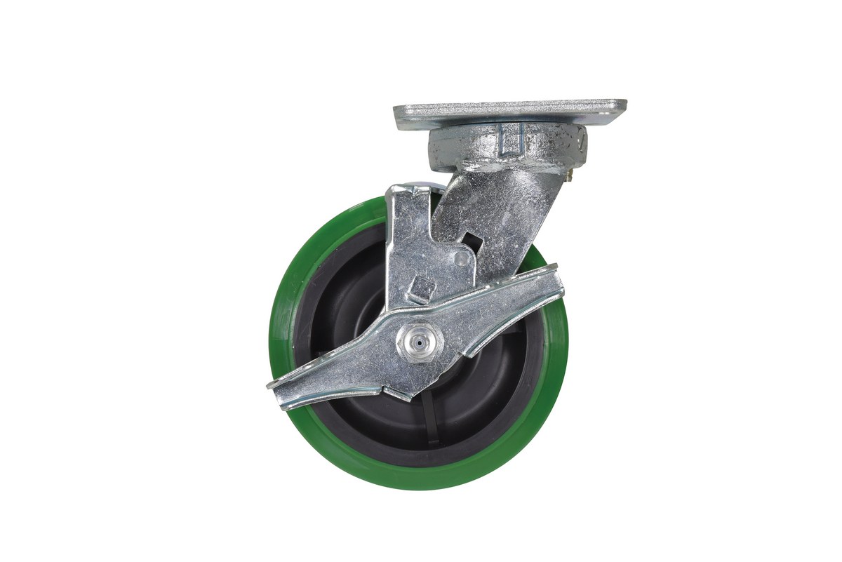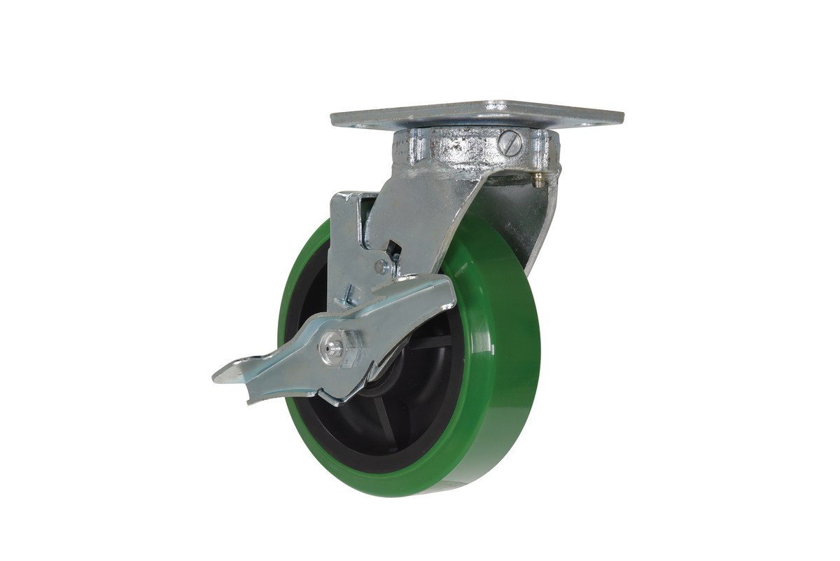 Made of 100% pure polyurethane tread (DT). Designed with a new liquid cast flow affusion that ensures a 100% bond and "zero" trapped air. Green tread color. 90 +/-5 Shore A. Wheel center is constructed of polyolefin. Made in Taiwan.
