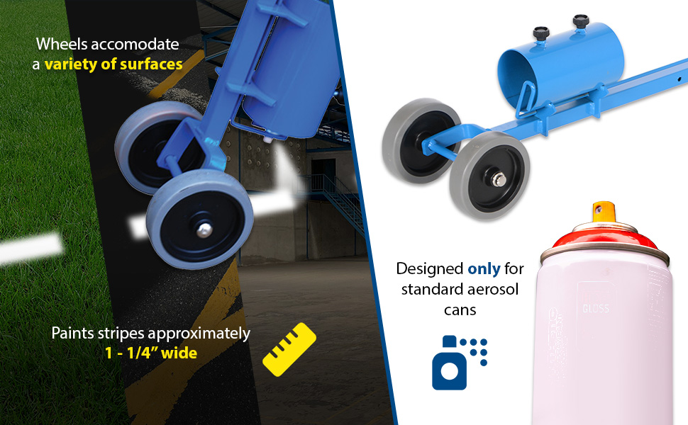 LINE-SA-W.gifEconomical applicator - simply pull trigger to mark paint lines on floors. Holds one standard aerosol can of inverted marking spray paint. Wheels assist with creating an even line approximately 1-1/4" wide. Steel construction with painted finish.