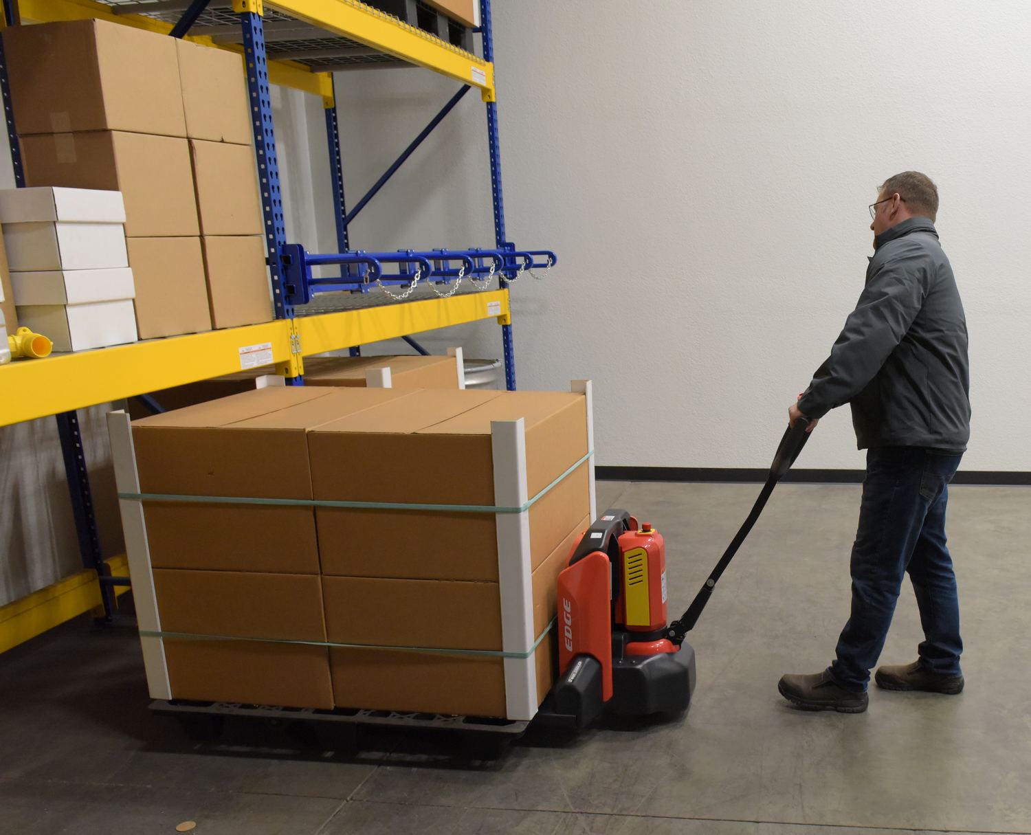 Combines the advantages of a manual and an electric pallet truck!