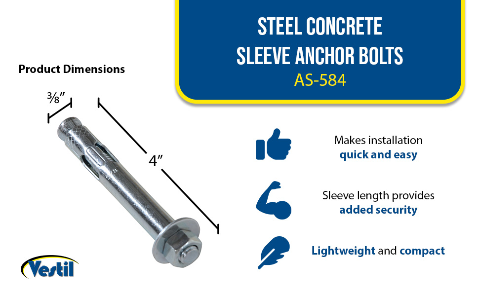 | Steel Concrete Sleeve Anchor Bolts 4 Pack 3/8 In. x 3 In. Silver | Package (qty.): 4 Sleeve Length (in.): 1 | 2 |