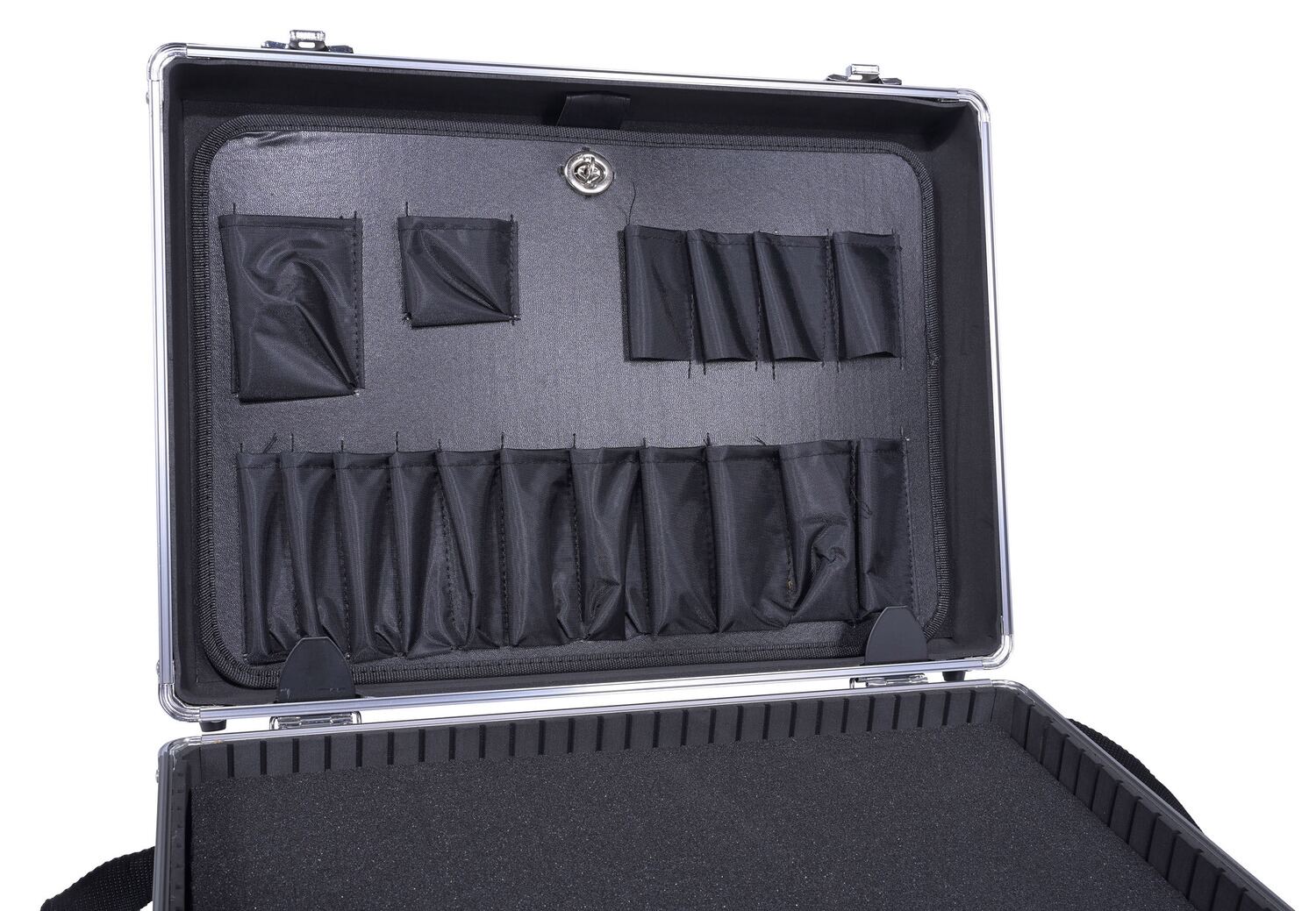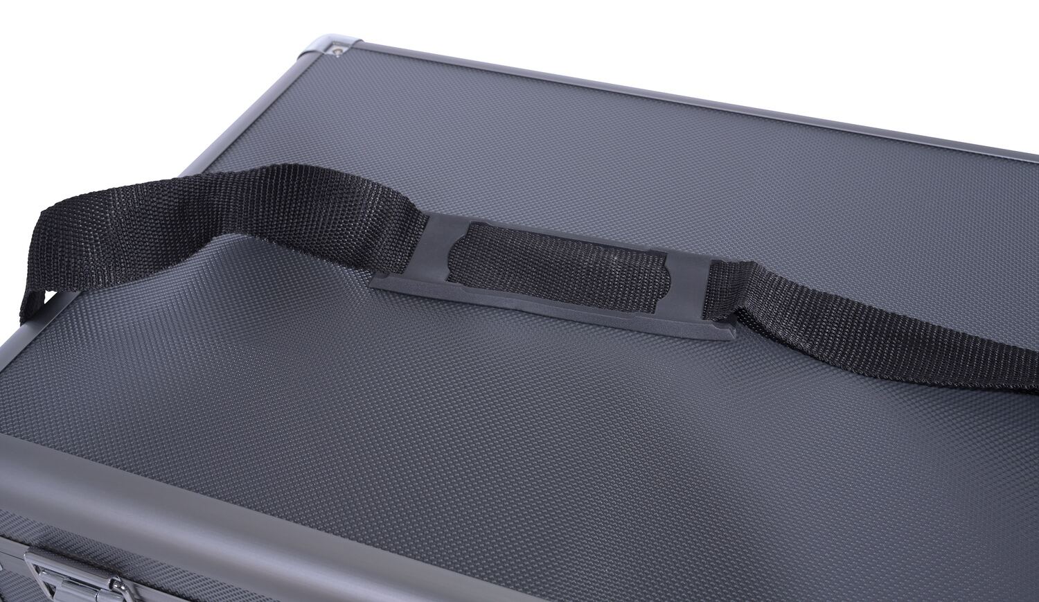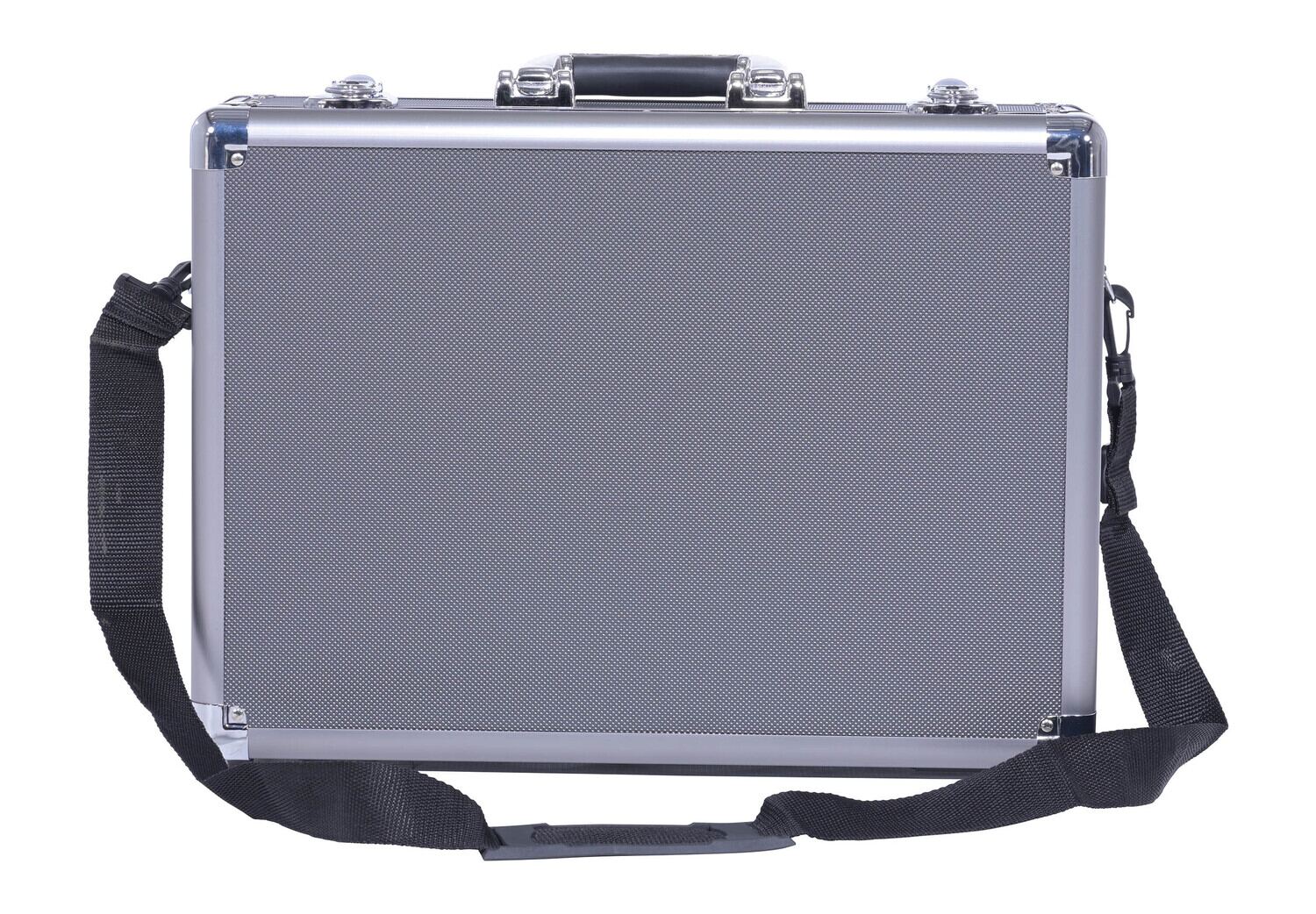 An Aluminum Carrying Case is a great way to store and transfer tools. The aluminum construction is hardy and can withstand the harsh elements of daily use, keeping items safe. With a compact design, the unit is perfect for on the go or left in a stationary place. Sleek smooth finish promotes simple handling.