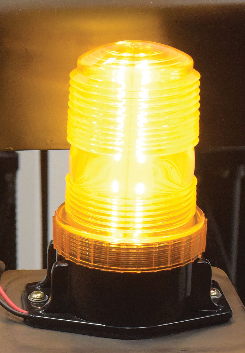The fork truck safety and warning light helps keep equipment and personnel safe in industrial surroundings. The amber color is highly visible in both well and poorly lit environments, while the automatic strobe function of three LED's gives an extra sense of caution. A strong polycarbonate housing design with a permanent or temporary mounting choice maintains strength and durability throughout a variety of conditions. Gasket for water seal protection and hardware are included.