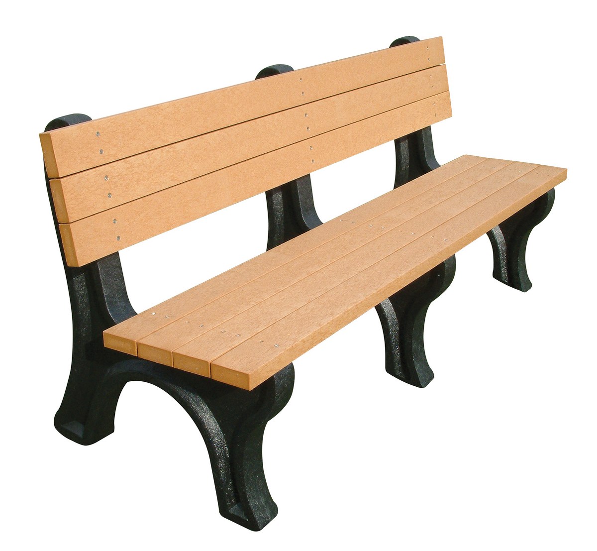 | Recycled Plastic Economy Backed Bench 72 In. Black Legs and Cedar Seat | Seat Category: Bench Bench Material: Recycled Plastic HDPE | 58 |