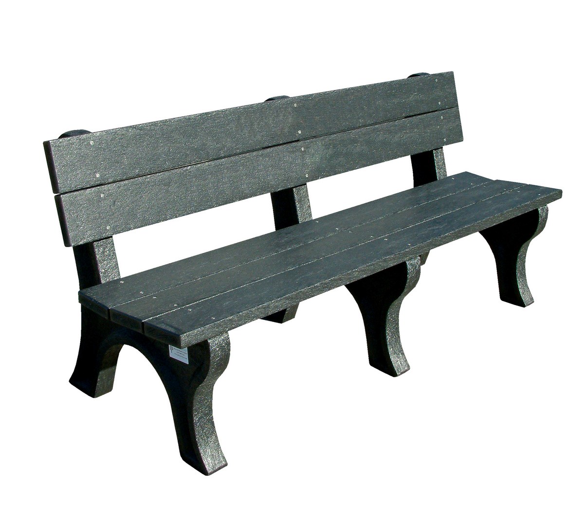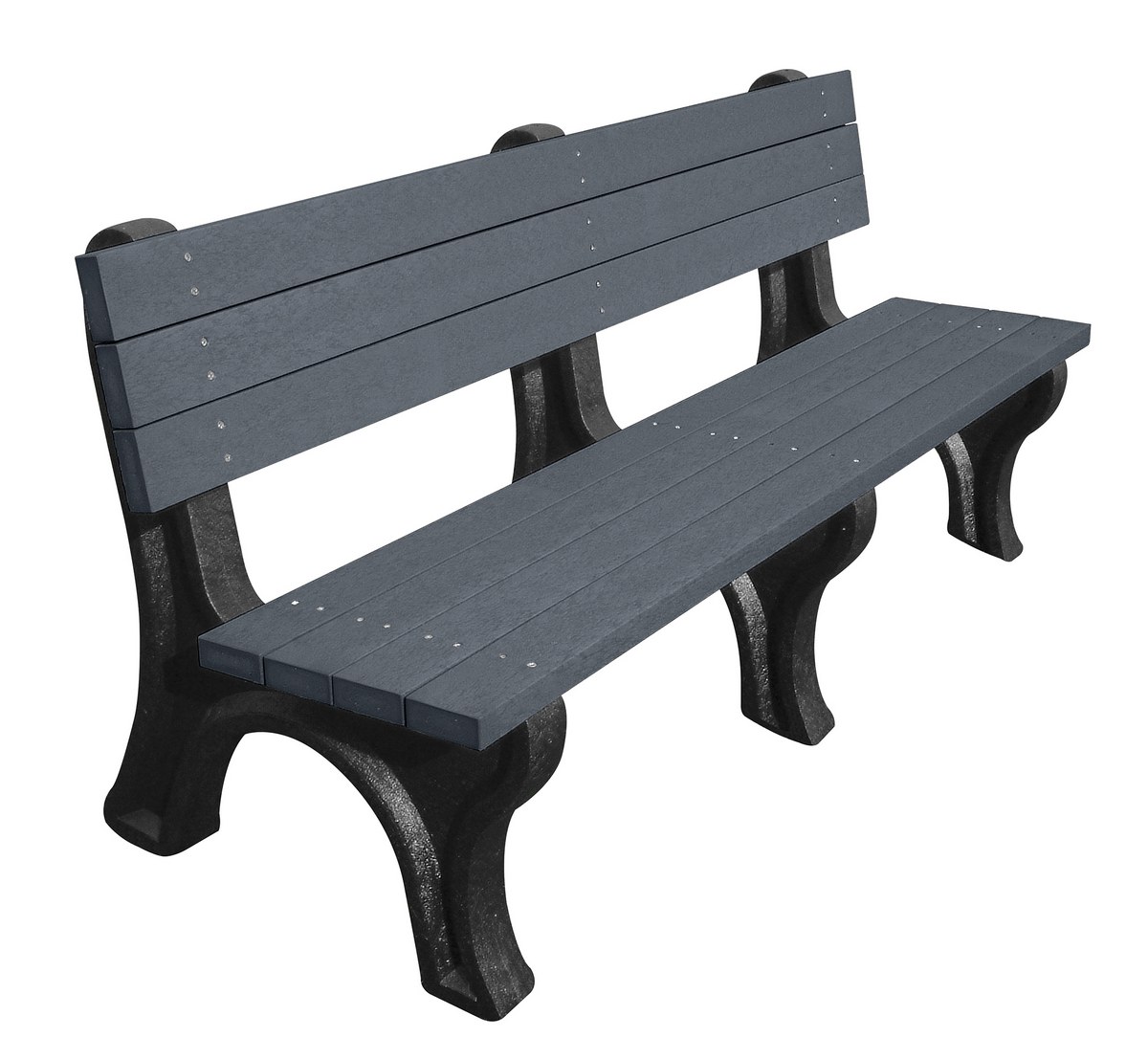 | Recycled Plastic Economy Backed Bench 72 In. Black Legs and Charcoal Seat | Seat Category: Bench Bench Material: Recycled Plastic HDPE | 116 |