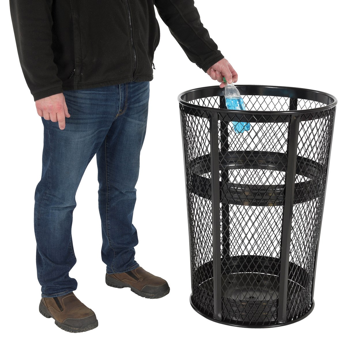 The expanded metal trash cans are perfect for a variety of settings. The mesh style metal design allows for the amount level to be determined easier and allow for an easier cleanup. The strong, yet lightweight, construction withstands adverse conditions on a consistent basis and be moved easily without the need of extra personnel when empty. Available in a variation of colors.