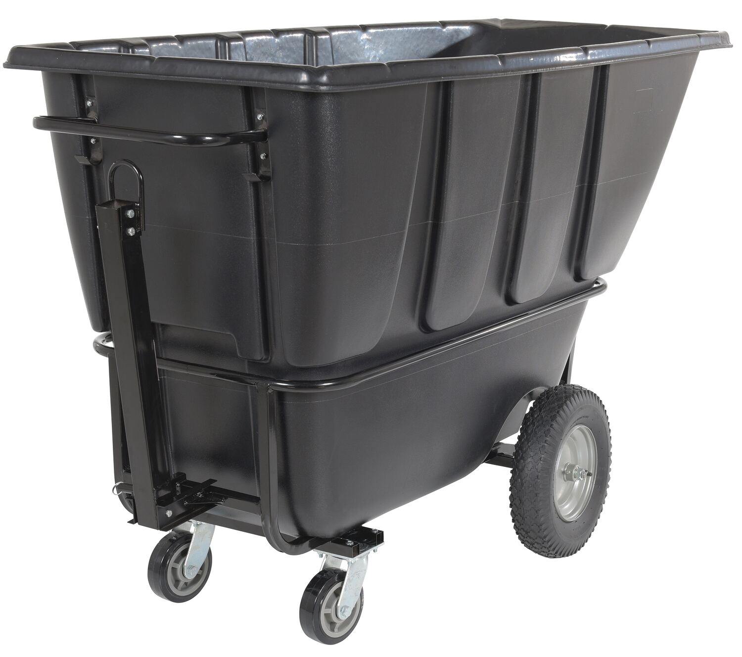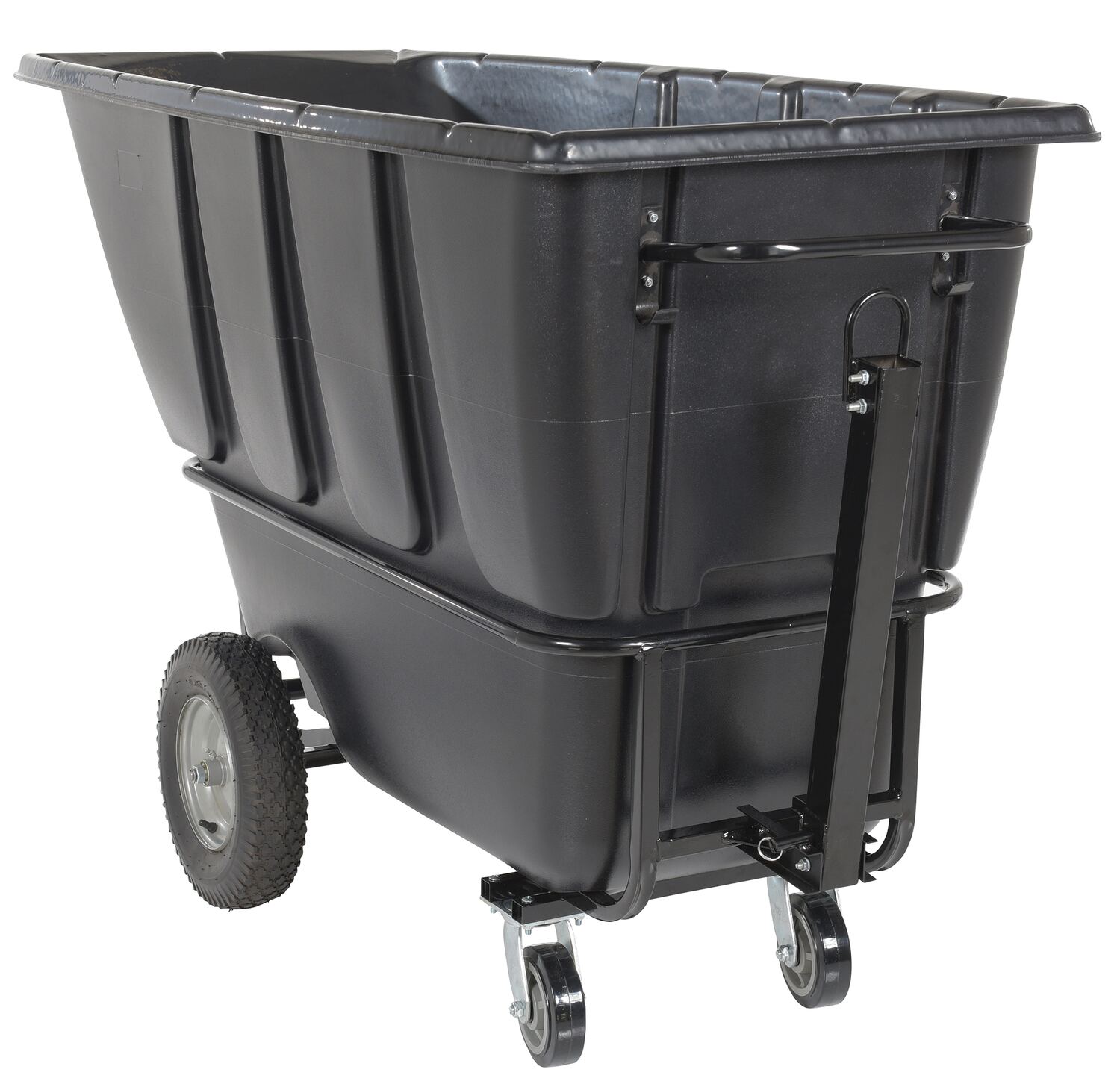 TDT-TB-100-HD-BL TDT-TB-100-HD-BLPlastic Heavy Duty Tow-Able Tilt Truck 1 Cubic Yard BlackUniform Capacity (lb.): 2100