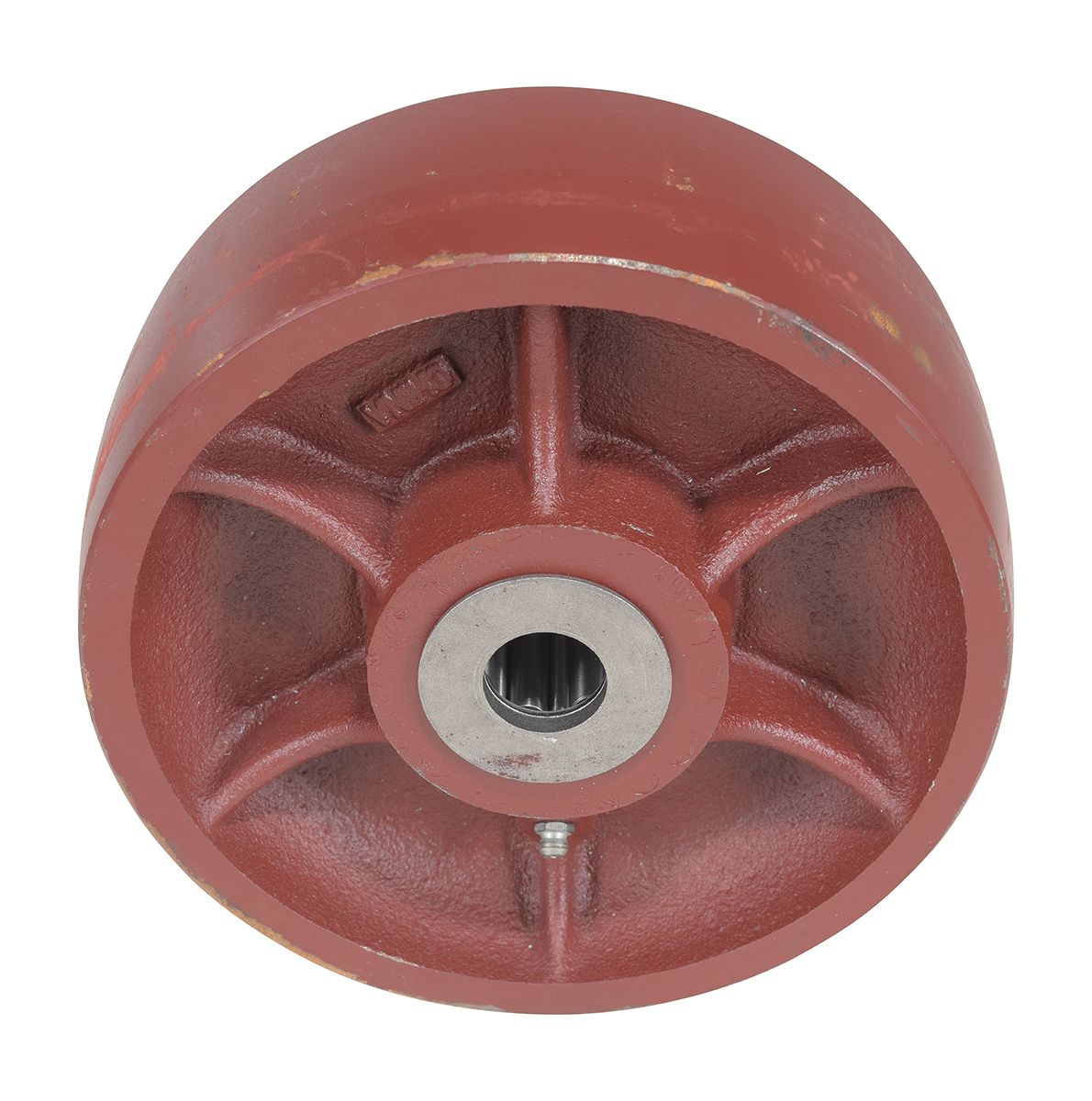 The ductile steel wheel can withstand high temperatures and absorb high impact without failure. The wheel is made out of ductile iron, heavy duty core and wheel face. This wheel is unbreakable in usual service and the tensile strength is 70,000 PSI. The wheel is capable of carrying incredibly heavy loads and perfect for extreme heavy duty applications. Zerk fitting on the wheel.