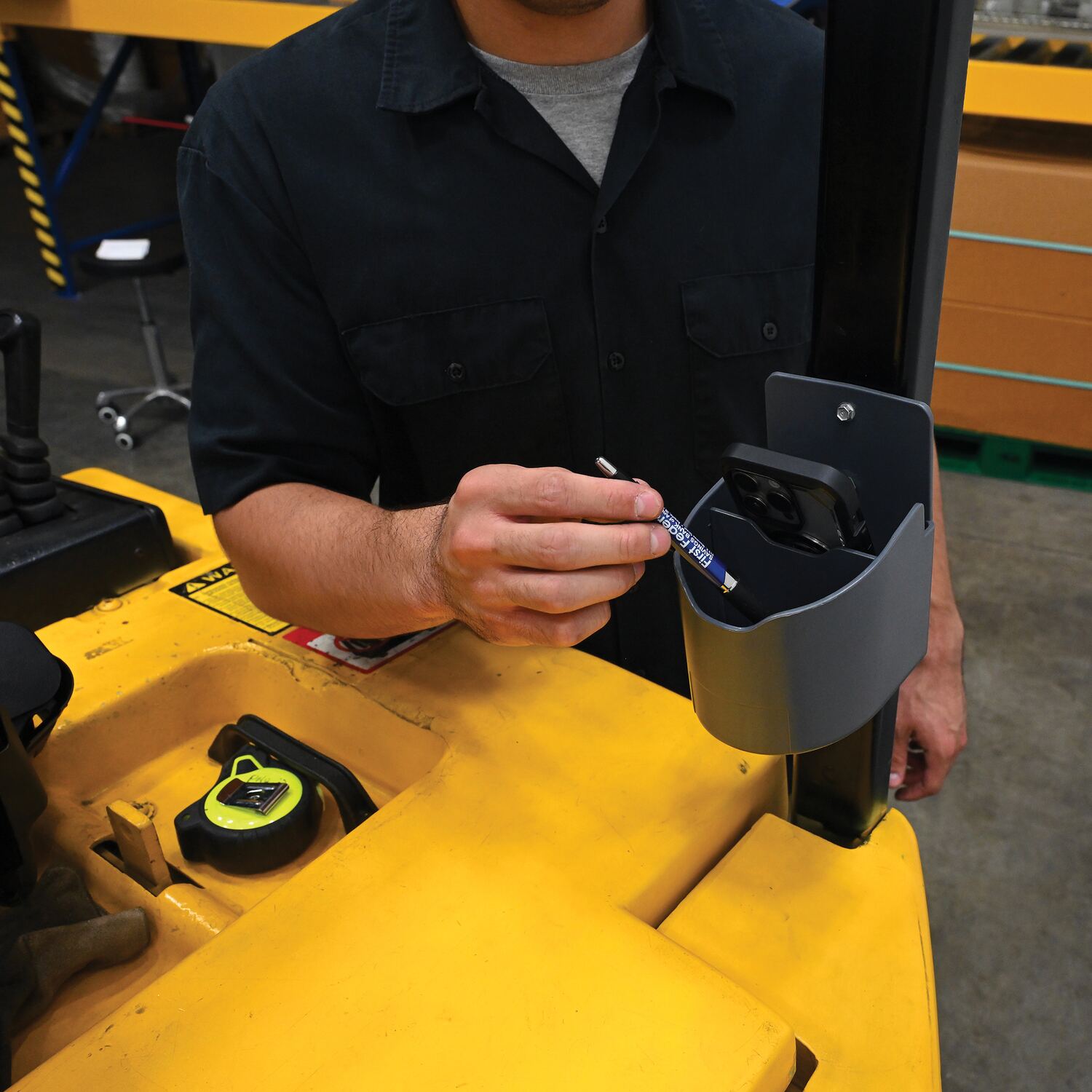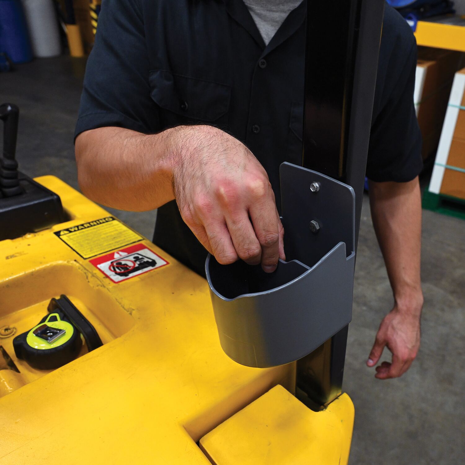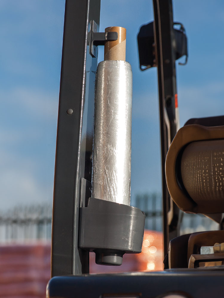 FTA-P-SWC_3.jpgIn warehouses stretch wrap is seemingly always required. But, rolls of wrap can often be elusive; gone the second you need it. That's where the stretch wrap caddy comes in! The stretch wrap caddy is built to hold rolls of wrap when your hands are otherwise in use, like driving a fork truck. The caddy can be attached to the exterior of the fork truck in any position that fits the users' preference and ready for use in a matter of minutes. So stop wasting precious time looking for the roll of stretch wrap and just remember it's in the last place you left it; in the stretch wrap caddy!