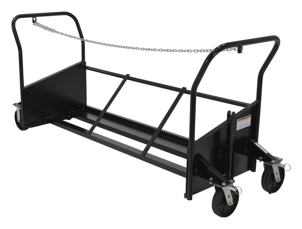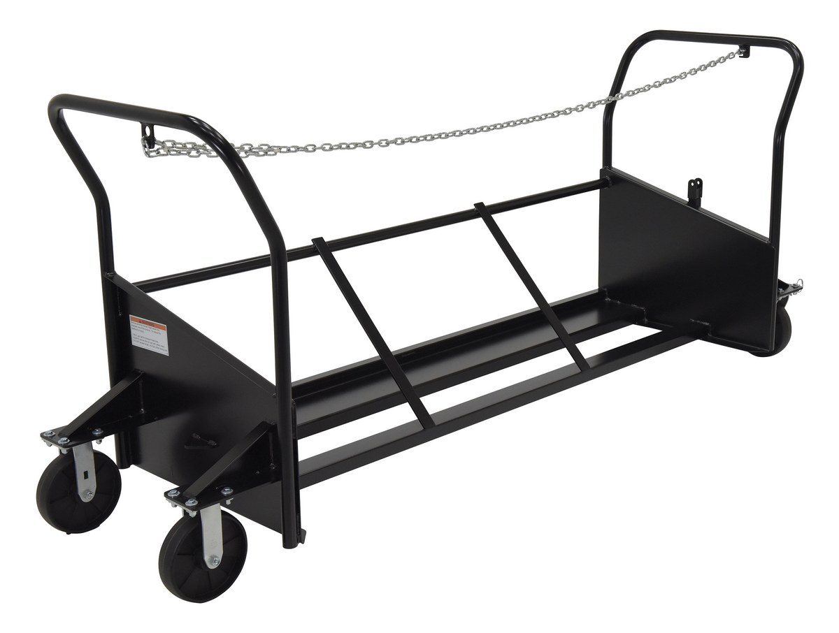 No more lugging heavy trash cans around instead transport them with a Trash Can Cart. Transport up to three trash cans at a time. Each unit is secured in place with a heavy duty chain and chain retainer. The push handle is located at an optimum ergonomic height of 40-11/16". Tow bar on one end for towing with a golf cart or similar service vehicle and a pitch hitch on the other end to attach multiple units together for towing. Rolls smoothly on four 8" x 2 (2) rigid, (2) swivel 4 position locking casters. Trash Cans sold separately, see here.