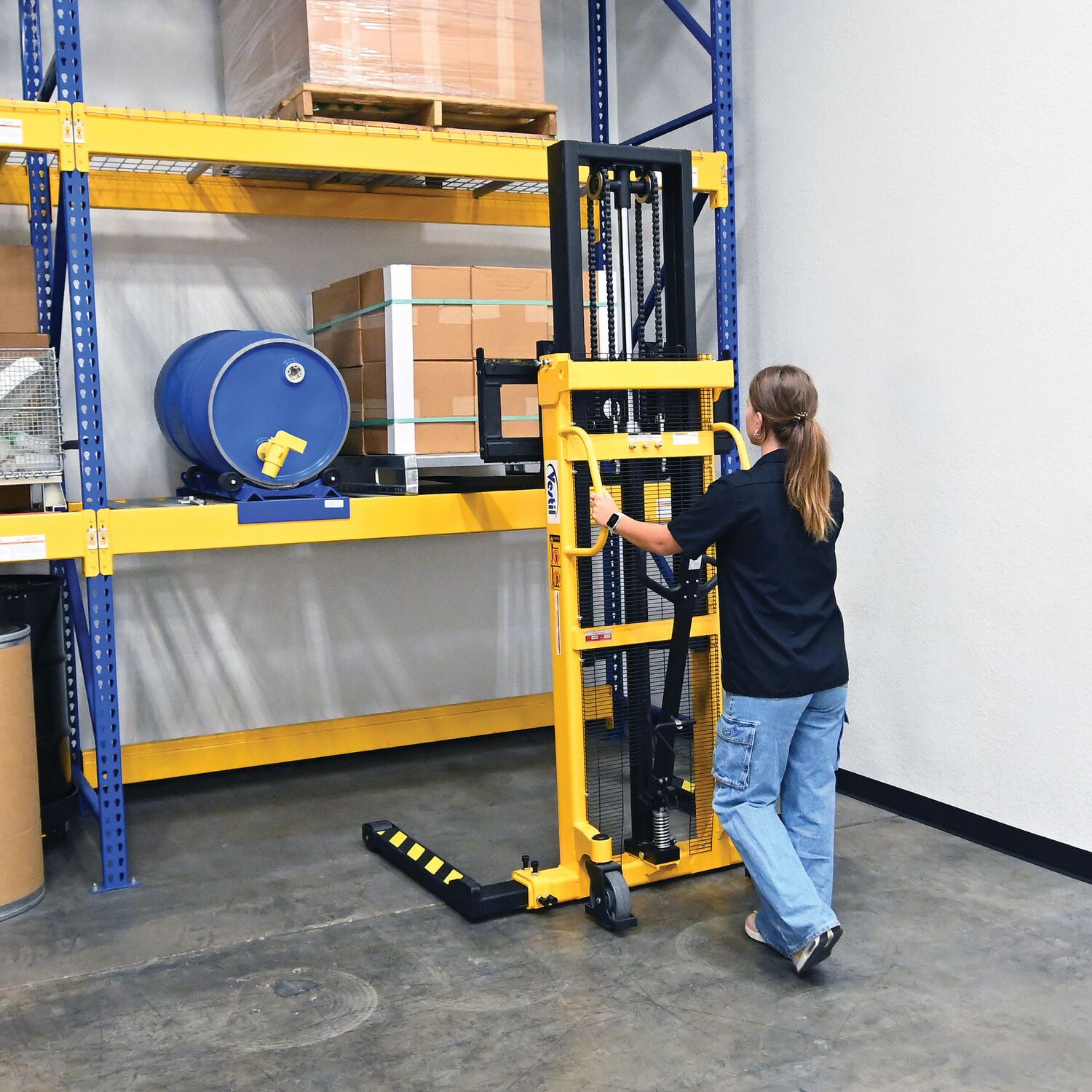 | Steel Manual Stacker Narrow Mast Adjustable Forks/Legs 1,000 Lb. Capacity Black / Yellow | Uniform Capacity (lb.): 1,000 Service Range (in.): 2-1/8 to 62 | 472 |