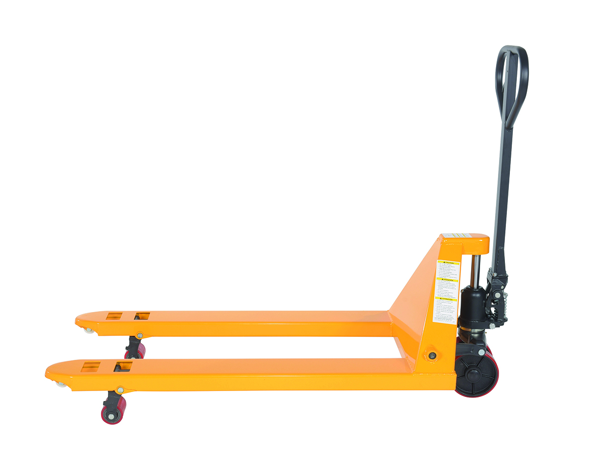 Proven ergonomic design has been time-tested for providing years of reliable usable. An economical way for one person to move heavy pallet loads without the use of a fork truck. Ergonomic design requires only 75 lbs. of pulling force when fully loaded. Spring loaded loop handle automatically returns to vertical position when not in use. Chrome-plated hydraulic pump piston for long seal life. Individual fork width is 7". |