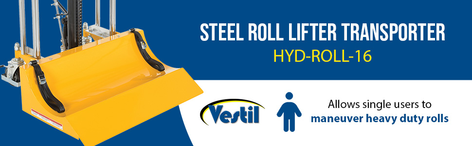 HYD-ROLL-16 HYD-ROLL-16Steel Roll Lifter Transporter 15-3/4 In. Roll Diameter 880 Lb. Capacity YellowUniform Capacity (lb.): 880