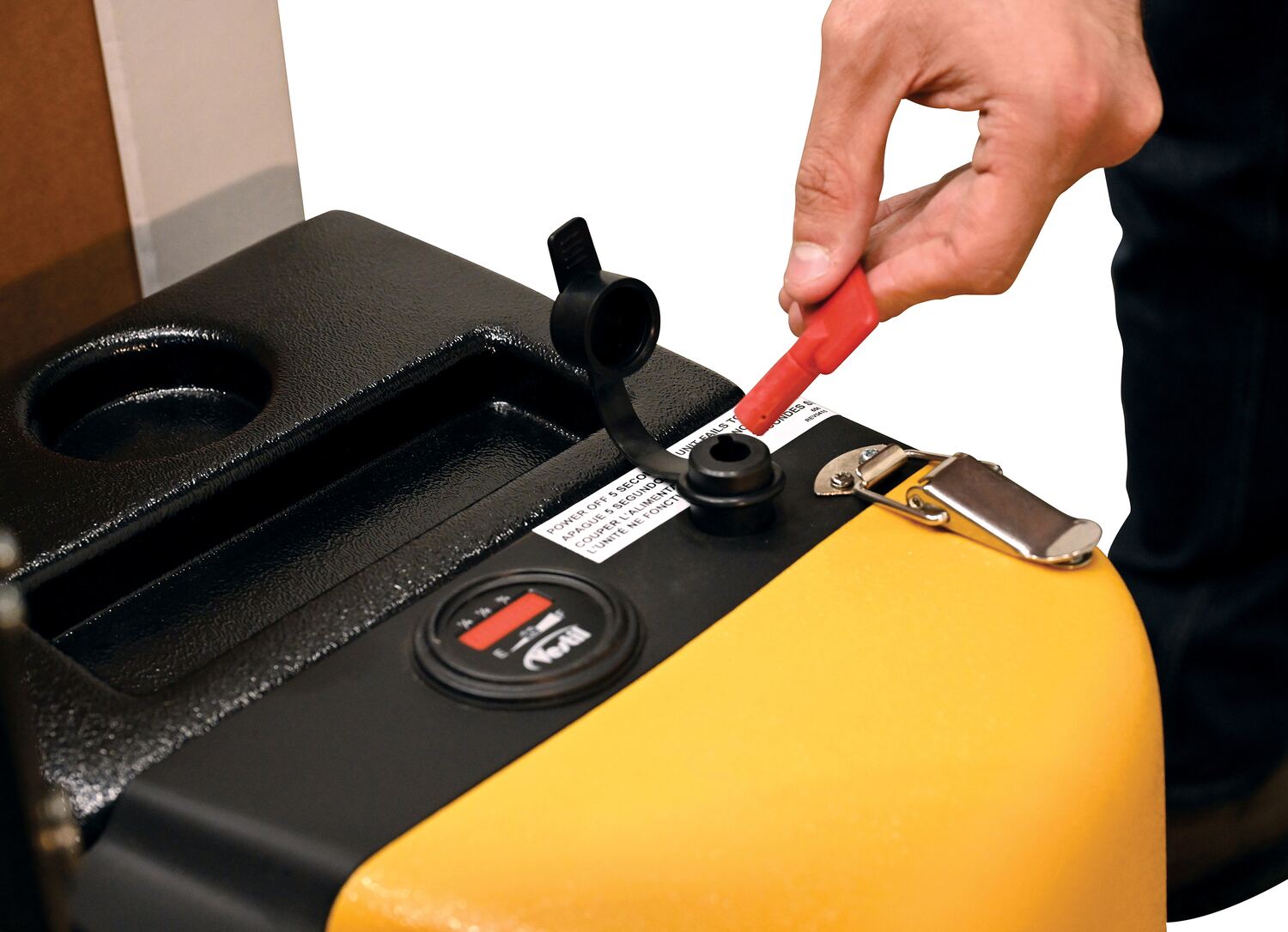 - Safety belly reverse button improves worker safety