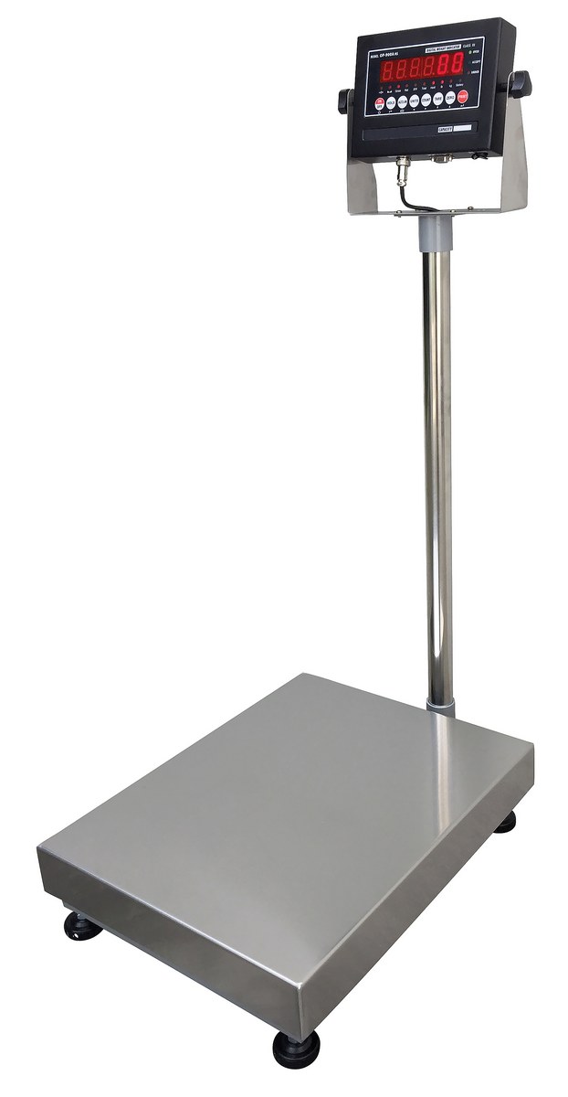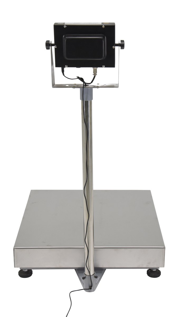 Designed for speed, accuracy, and high usage. Ideal for busy shipping docks, outdoor markets, and food processing. Mild steel platform, interlocking 304 stainless steel tray for easy cleaning. Adjustable tilt display for convenient viewing angles. Rechargeable battery and AC adapter. Aluminum environmentally sealed single point load cell. Adjustable feet provides exceptional traction. Removable column for indicator to work up to 4ft from the base. International protection IP65. Weight and count. Connection Port RS-232. LCD display (lbs, kgs, ounces, and grams).