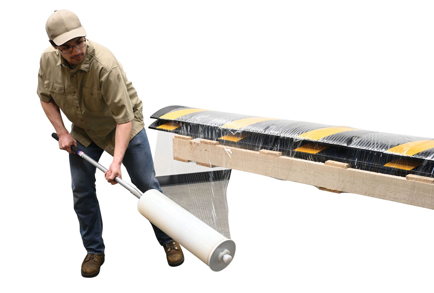 The Quick Wrapper is designed to allow for quick wrapping of pallets, while improving ergonomic posture during the wrapping process. Also allows for improved efficiency versus standard hand dispensers. The wrapper has a hand-operated tension/brake for film stretch. Ships knocked down.