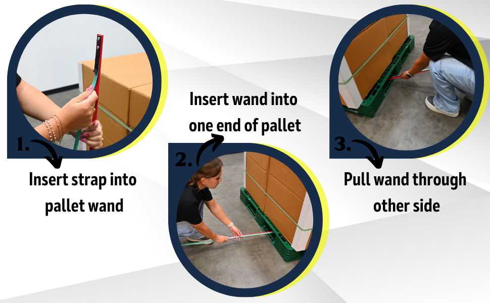 • Pallet wand allows for easy guidance of strapping through pallets