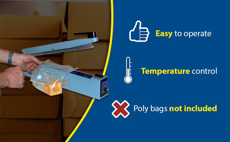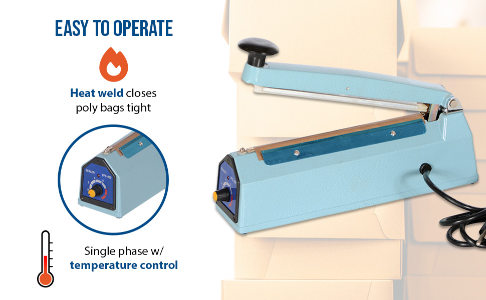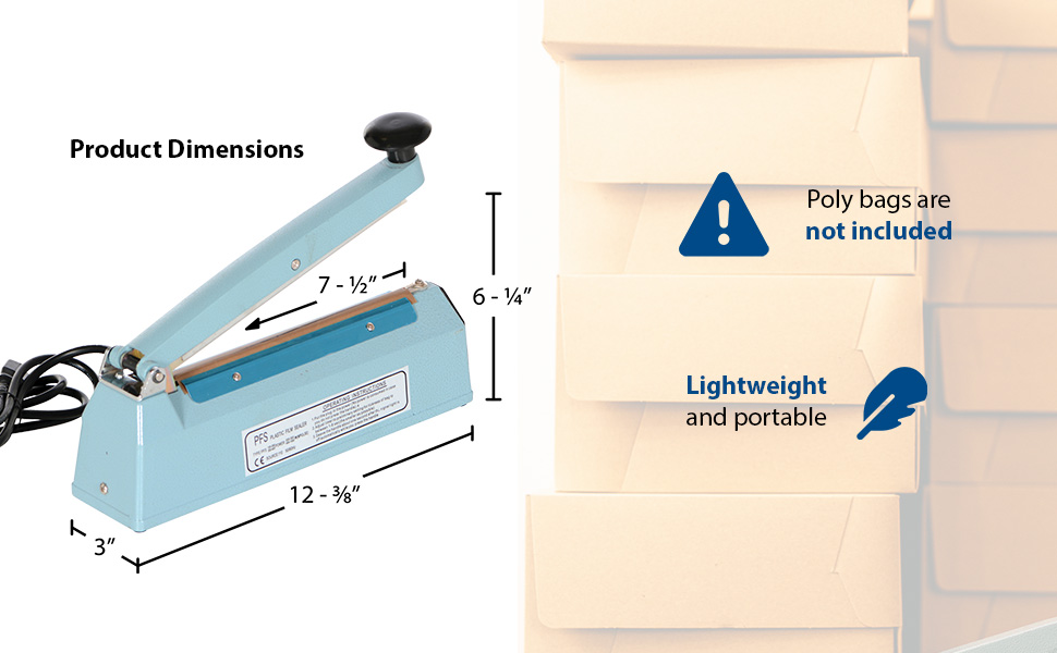 This lightweight table top Impulse Bag Sealer is ideal for packaging bulk mail, literature, catalogs or small parts. Easy to operate. A heat weld closes each bag tight.110V, single phase with cord and plug. Poly bags are not included.