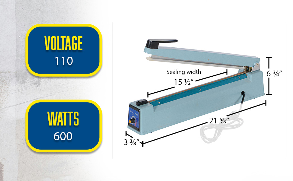 • 300 Watts/ 7-1/2" Seal, 400 Watts/11-1/2" Seal, or 600 Watts/15-1/2" Seal available.