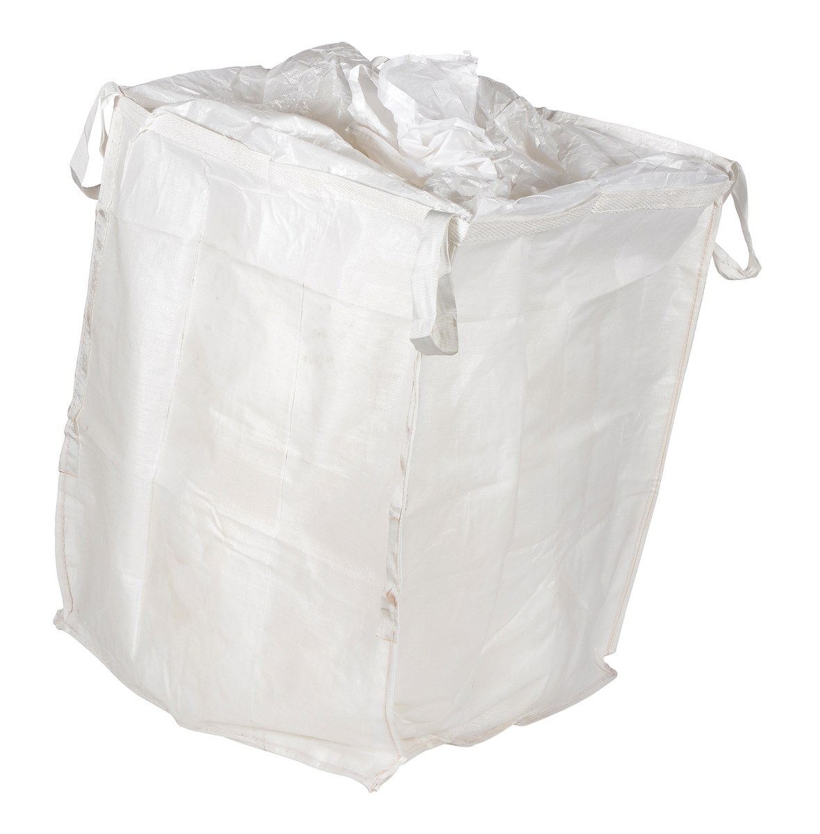 These fabric hoppers provide an economical and convenient means for storing and moving dry bulk commodities. The coated polypropylene has a polyester webbing for extra strength. The 8 oz. white fabric is UV treated. Fold for easy storage when not in use. The 4 corner straps provide convenient forklift handling, while the bottom of the unit can be opened for simple release of products. Capacity 3300 lbs.