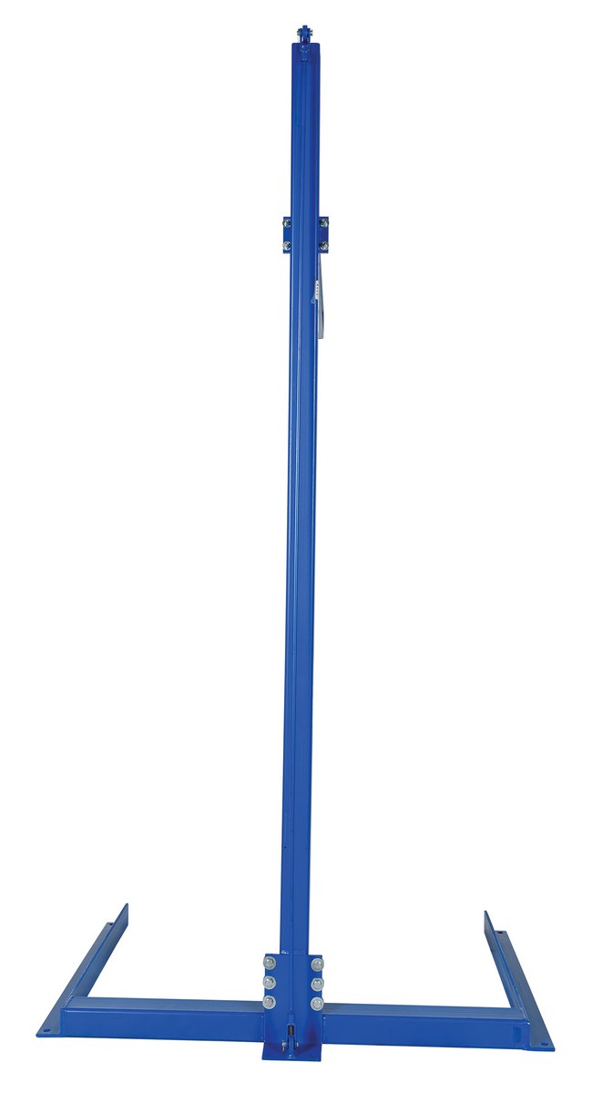 Utilize this unique jib in work cells and work areas. Unique fixed-height design allows for the 39-3/4" long outriggers to be mounted underneath a work bench. Easily lift product from cart to workbench. Straddle width is 47-3/4" (ID). Hoist, trolley and cart not included. Steel construction. Durable blue powder coat finish. Hoists & Trollies sold seperately.