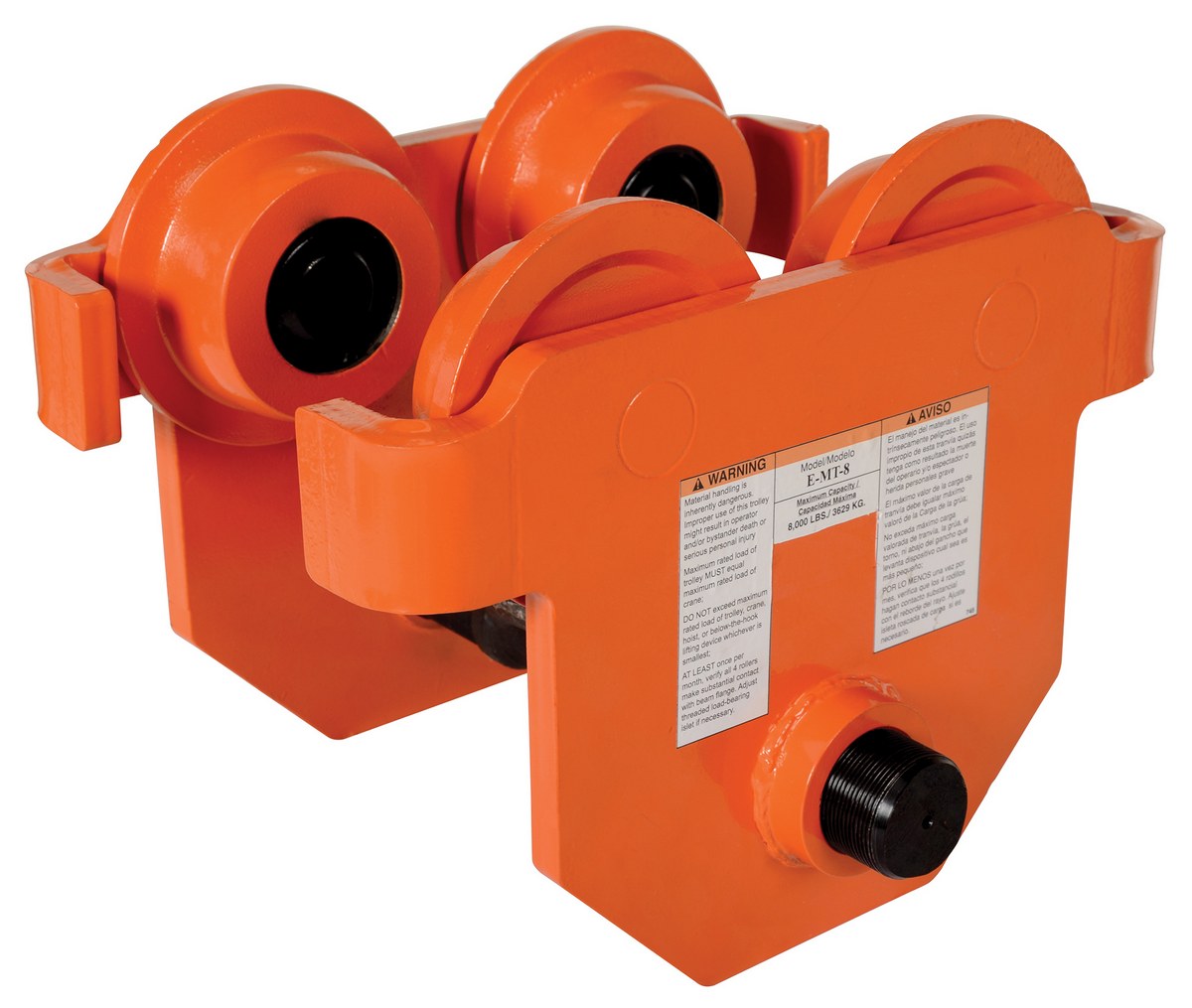 E-MT-8 E-MT-8Steel Push Eye Manual Trolley 8000 Lb. Capacity OrangeUniform Capacity (lb.): 8,000