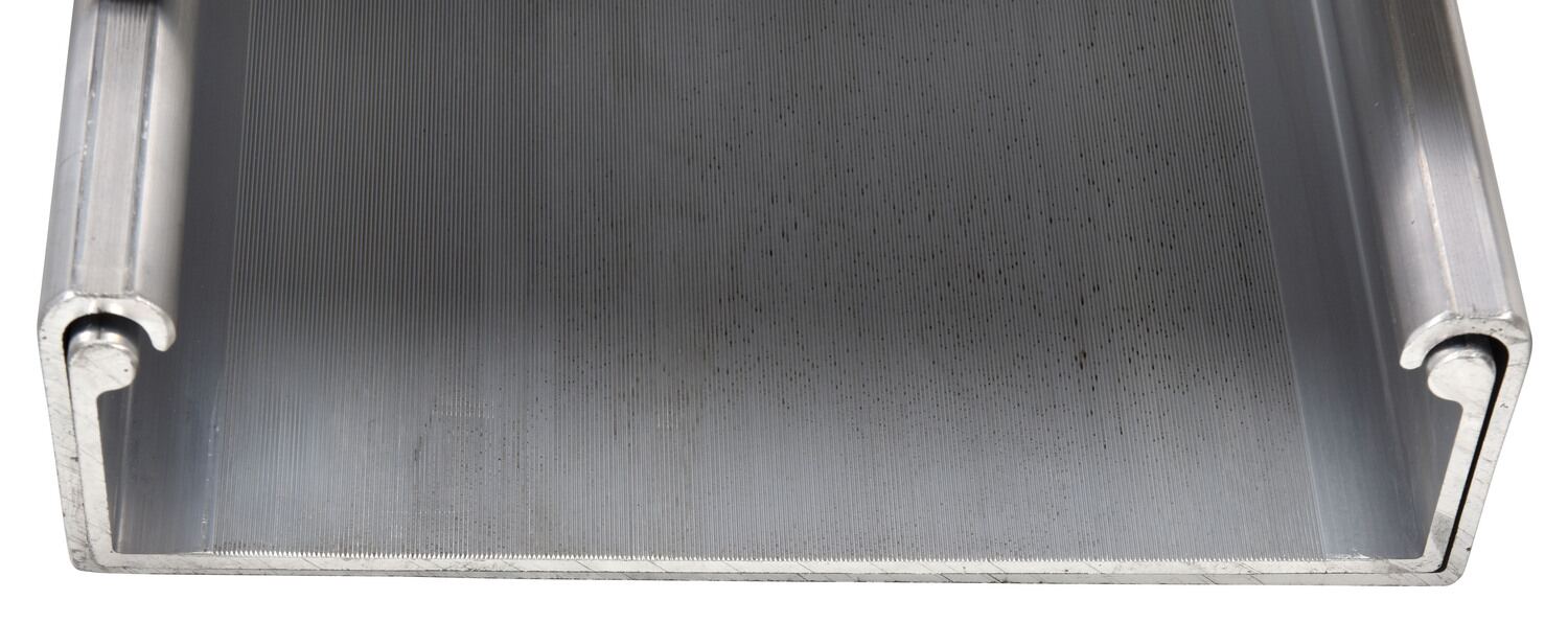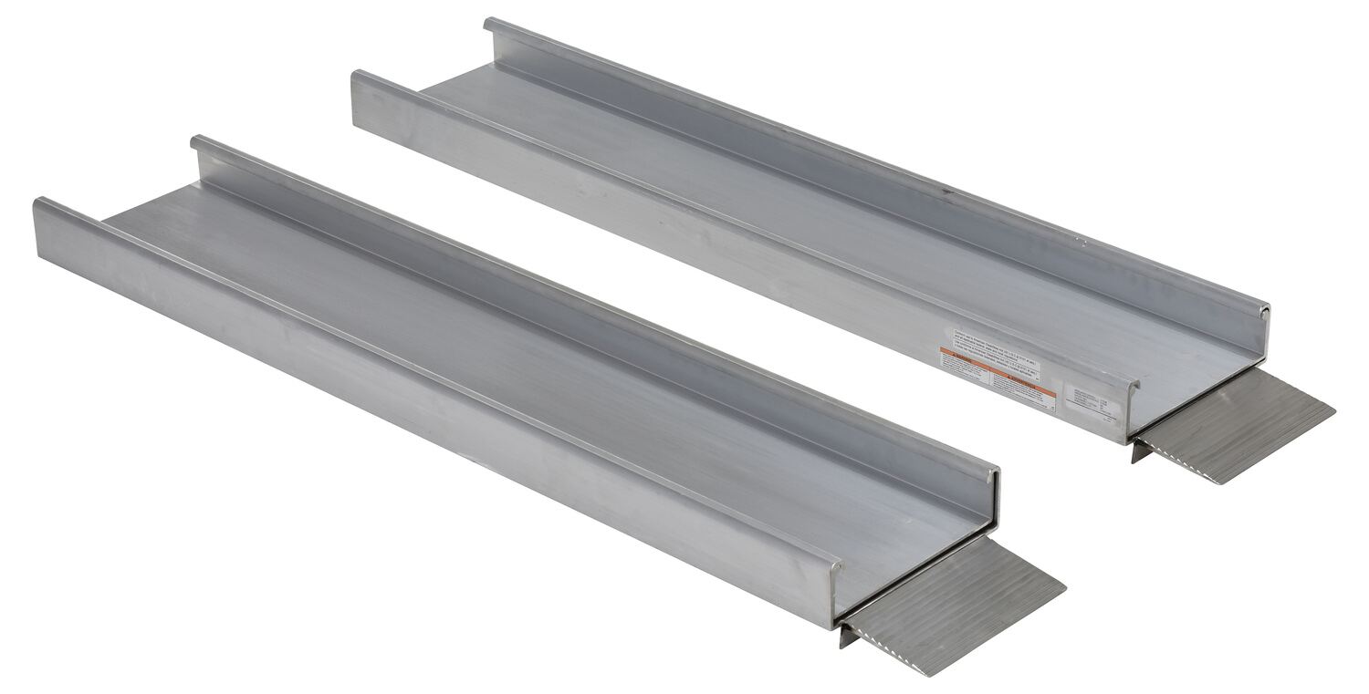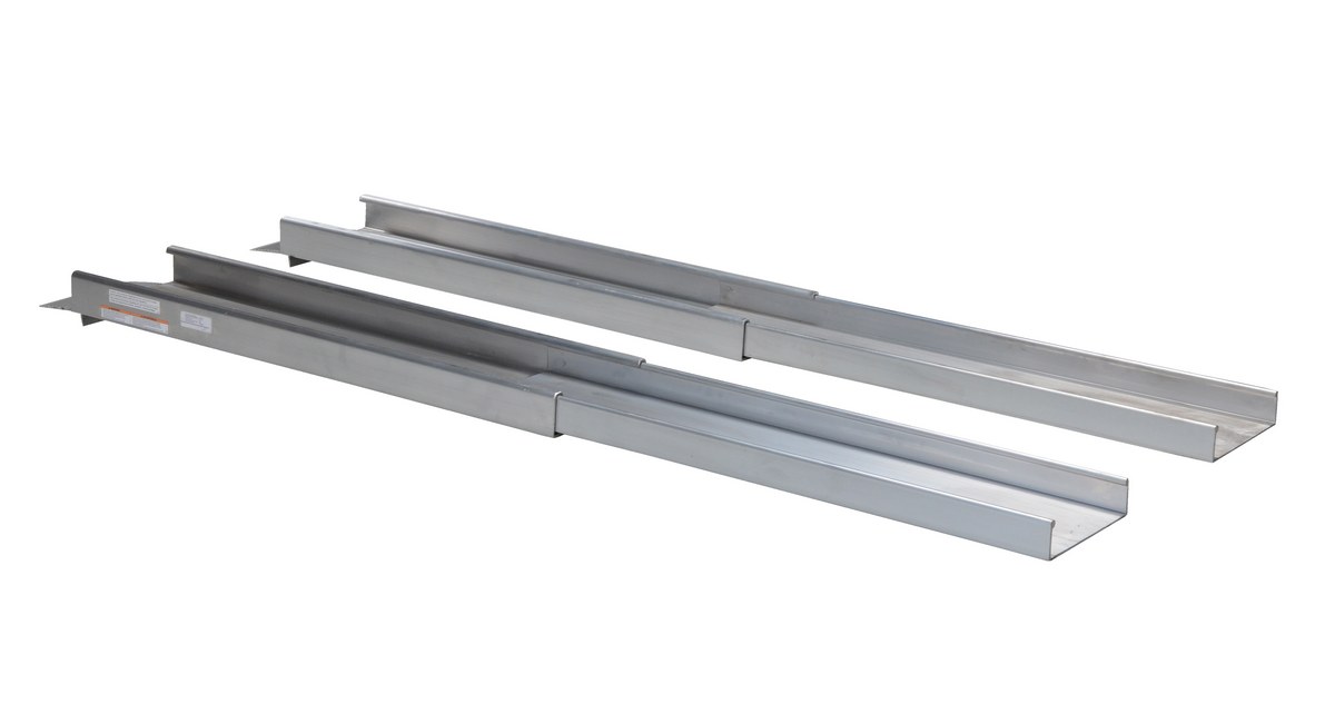 TELESCOPIC RAMP is constructed of lightweight aluminum extrusion. Top surface is serrated for positive traction.