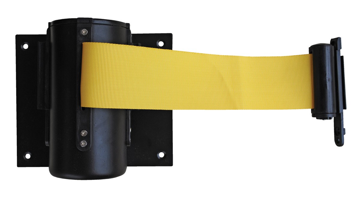 Keep lines flowing smoothly with economical personnel guidance barriers. Perfect for restaurants, offices, hospitals, schools, and banks. Ideal for indoor applications. Wall Mounted Barrier, model WEB-W includes yellow fabric web. The self-retracting web extends up to 72". Web end will attach to wall-mounted receiver or another floor-mounted barrier. Available in 15' length, model WEB-W-15. Classic Tensabarrier Web Barrier (TSB models) is seen around the world in various businesses and airports. Standard is a black belt but many belt colors and designs available, contact factory for different options and pricing. Series WEB are not interchangeable with series TSB.