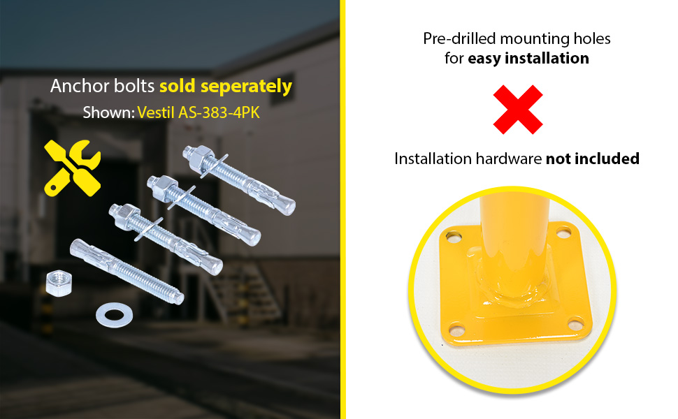 | Steel Pipe Safety Bollard 36 In. x 5-1/2 In. Yellow | Anchor Bolt: AS-344 Anchor Bolt Kit: AS-344-4PK | 29 |
