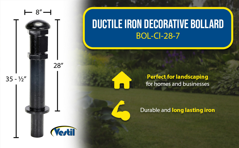 BOL-CI-28-7 BOL-CI-28-7Ductile Iron Decorative Bollard 28 In. x 7 In. BlackTop Diameter (in.): 8