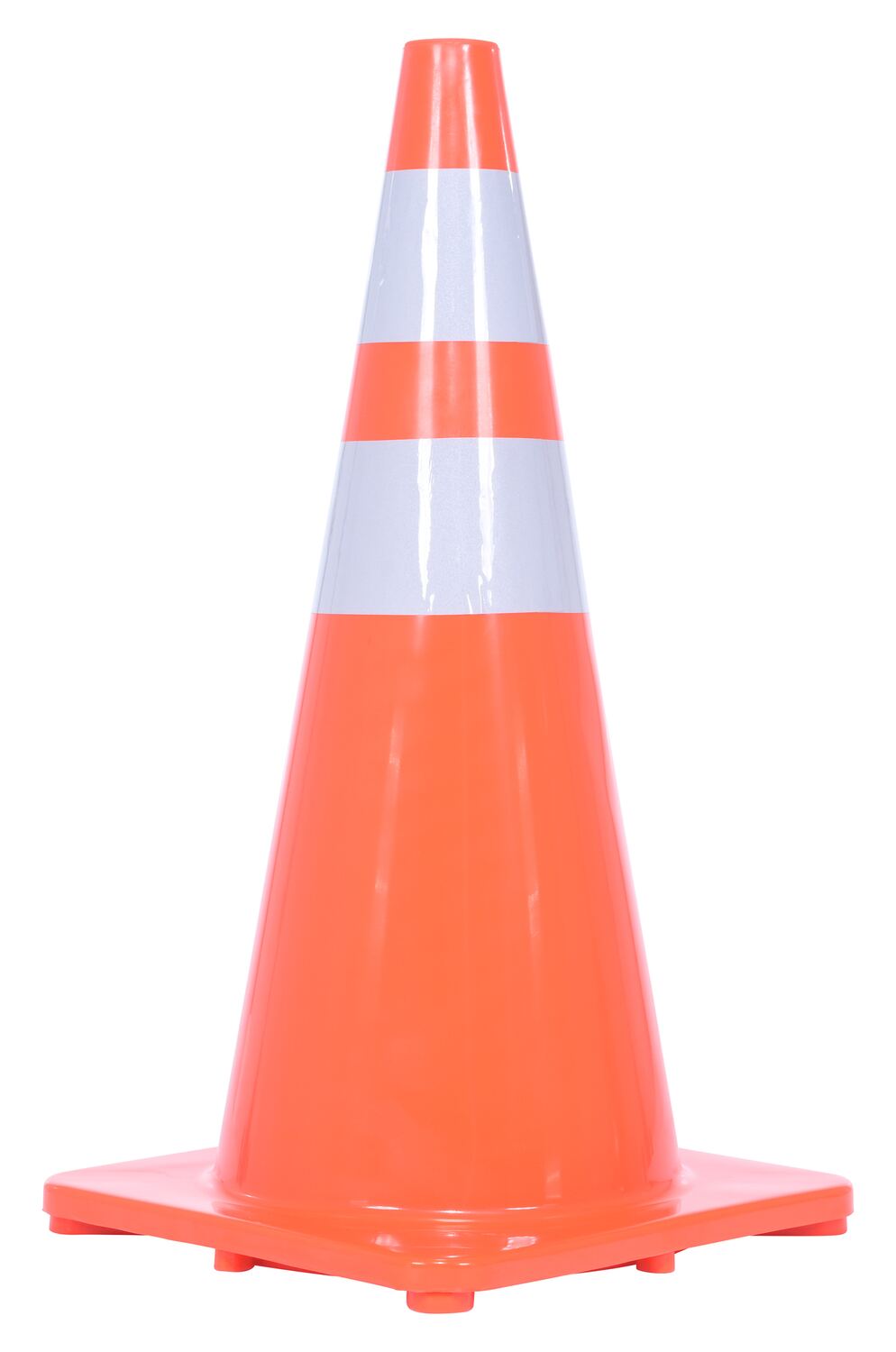 These durable all weather cones are constructed from 100% PVC for long life. Their construction prohibits fading, cracking. Will retain its shape for years of reliable service. All models feature one piece mold except model TC-30, which features a removable weighted bottom. High-visibility orange in color. Suffix -2R features two reflectors around the traffic cone.