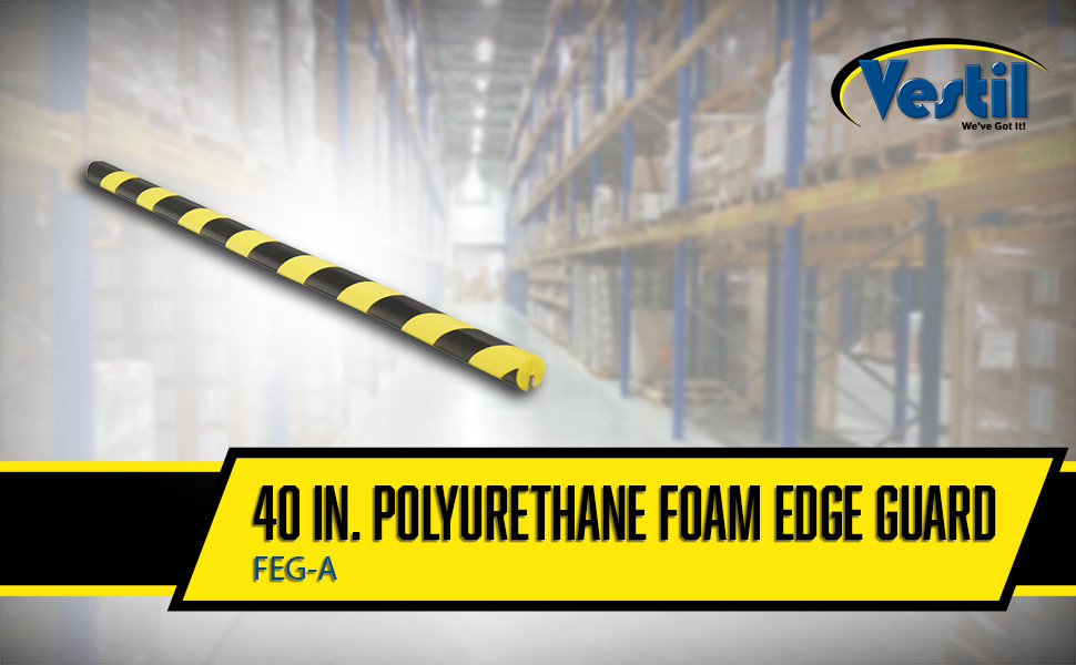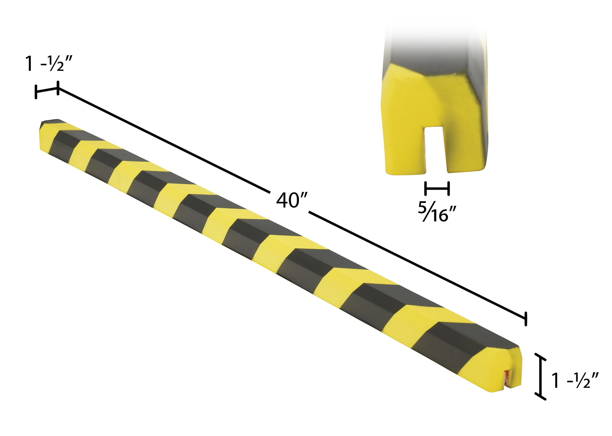 Versatile foam edge guards provided added protection when necessary. Each guard is manufactured from flexible foam that conforms to slightly irregular angles and surfaces Black and yellow alert striping. Sold in lengths of 40", easy to cut to custom lengths. Mounts with self-adhesive strips. Includes double sided tape for adhering.