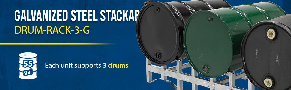 DRUM-RACK-3-G DRUM-RACK-3-GGalvanized Steel Stackable Drum Rack 3 Drum 55 Gallon 2400 Lb. Capacity GrayUniform Capacity (lb.): 2,400