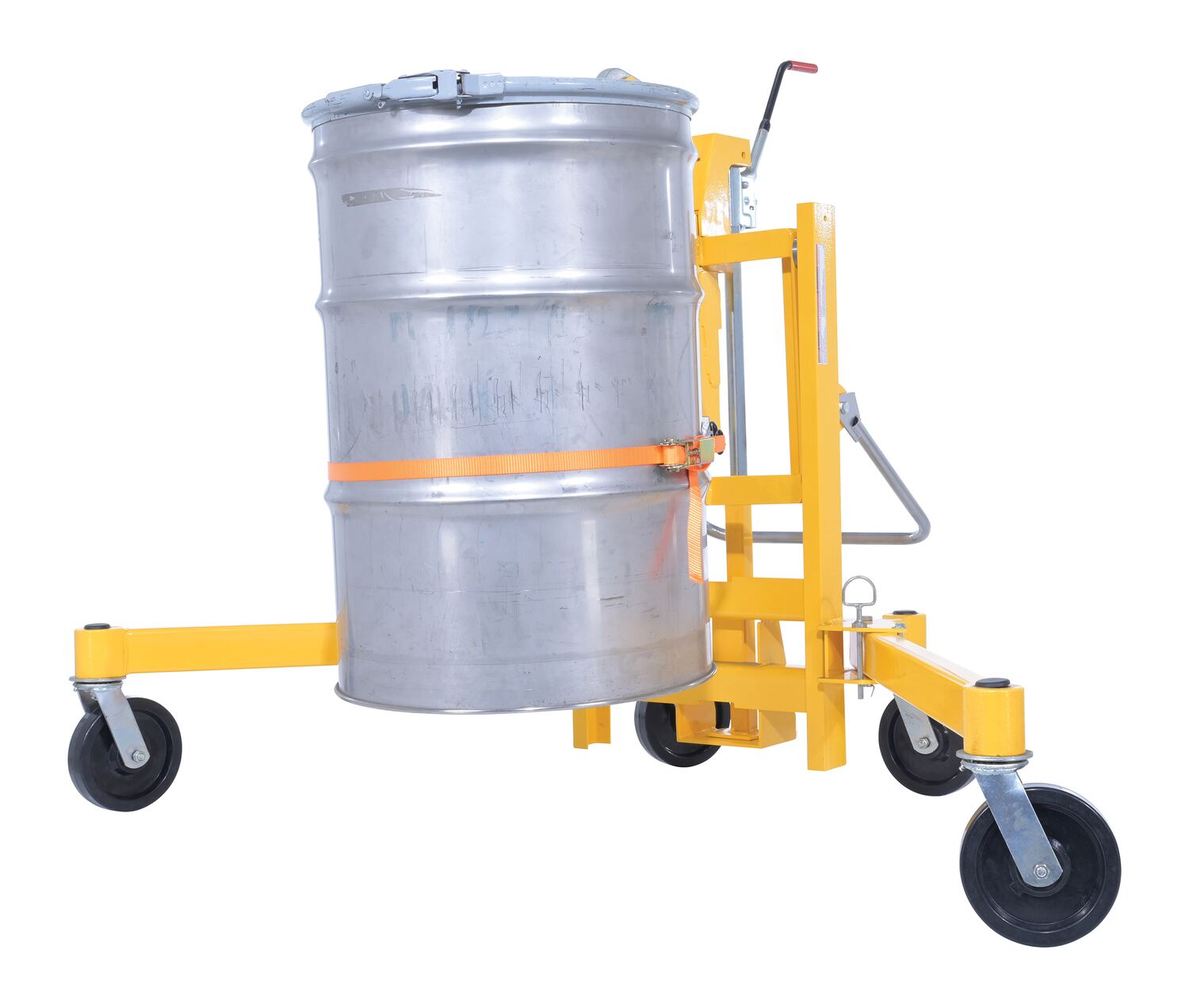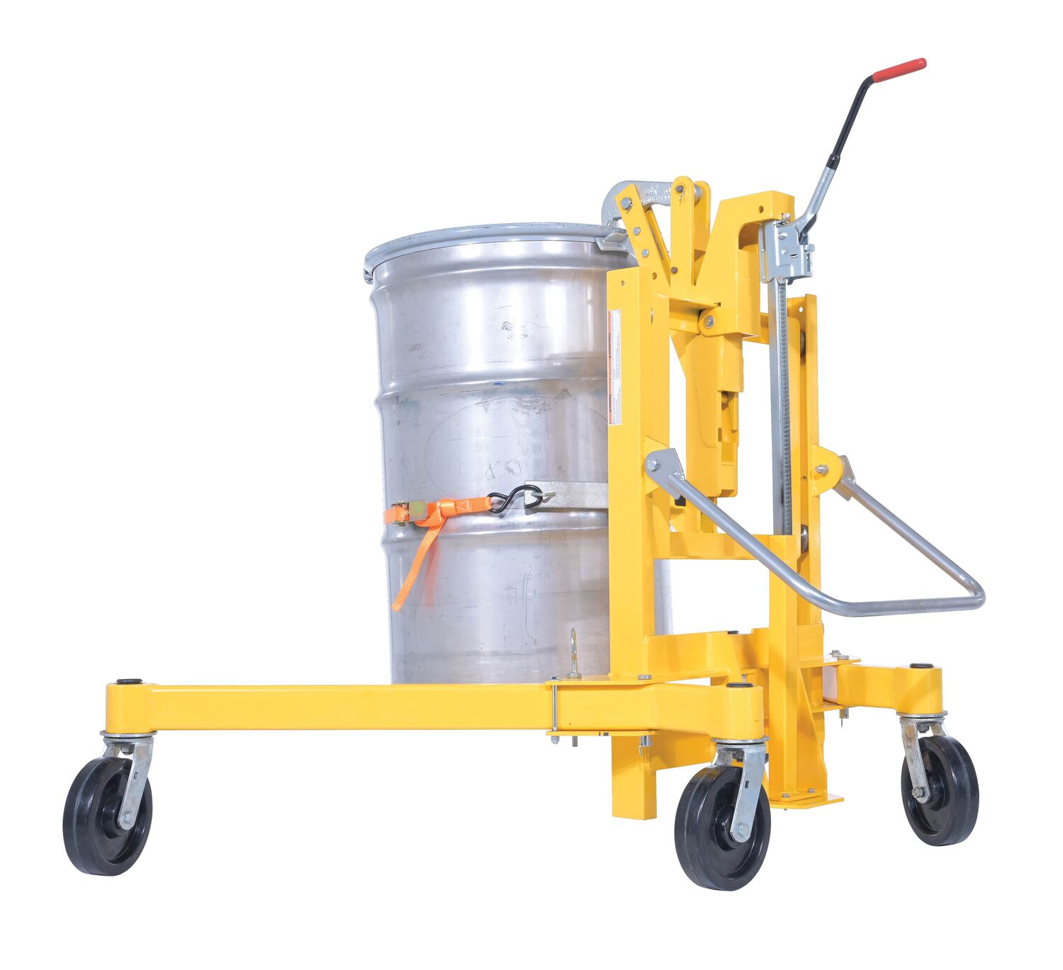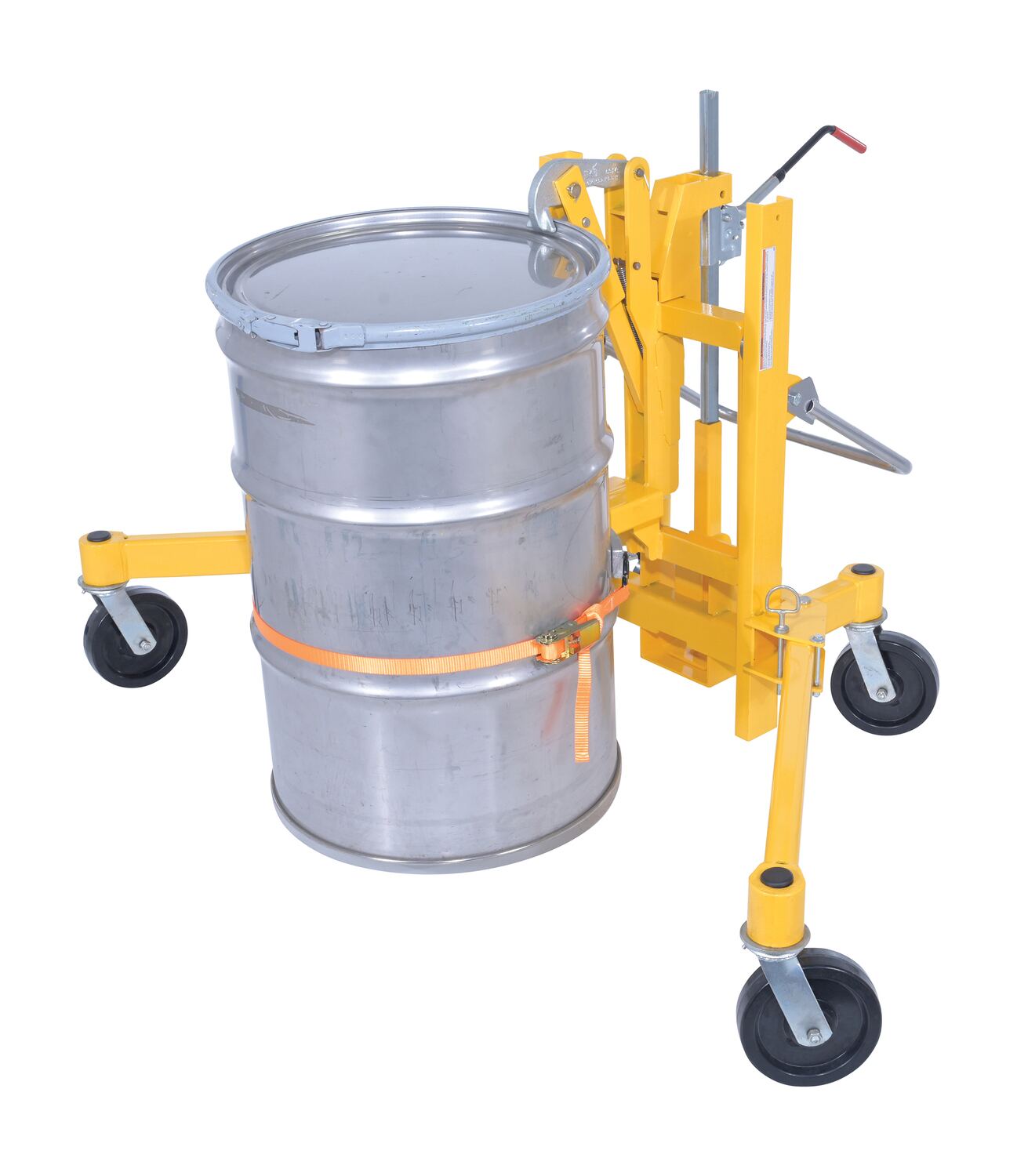 The portable Economical Drum Transporter is designed to lift and transport drums with a top lip. Drums are secured in place by utilizing the top jaw grip, as well as, the central support and strap. With a foot pump lift design, the user can position the drum to the best suitable height. The legs of the transporter have a straddle design feature that can be alternated to for a safer reach of drums, while on pallets. Scale weighs drums to an accuracy of +/-0.5 pounds and includes (6) AA cell batteries.