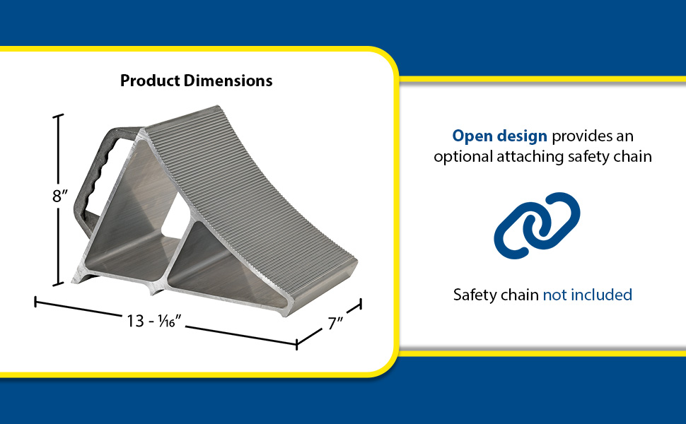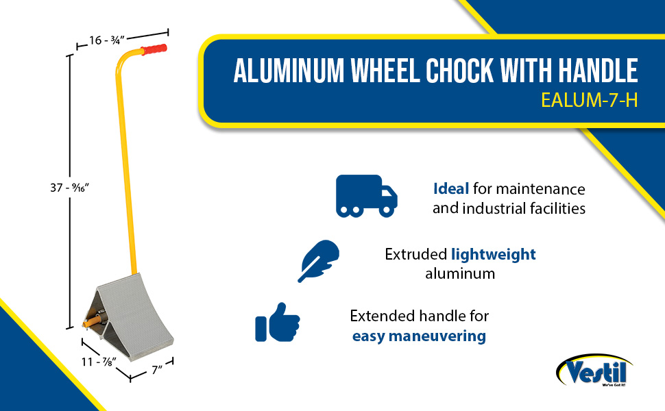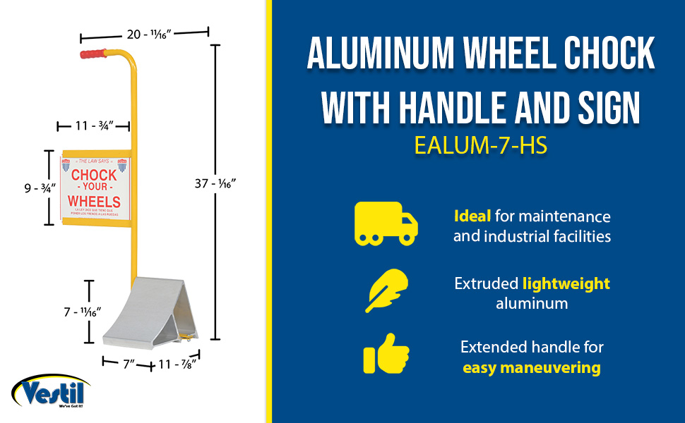 EALUM - The Aluminum Wheel Chock is ideal for the maintenance and industrial facilities. The functional design allows the user to brace the wheels, preventing the unit from moving and jostling. The open construction provides an efficient way of transporting.