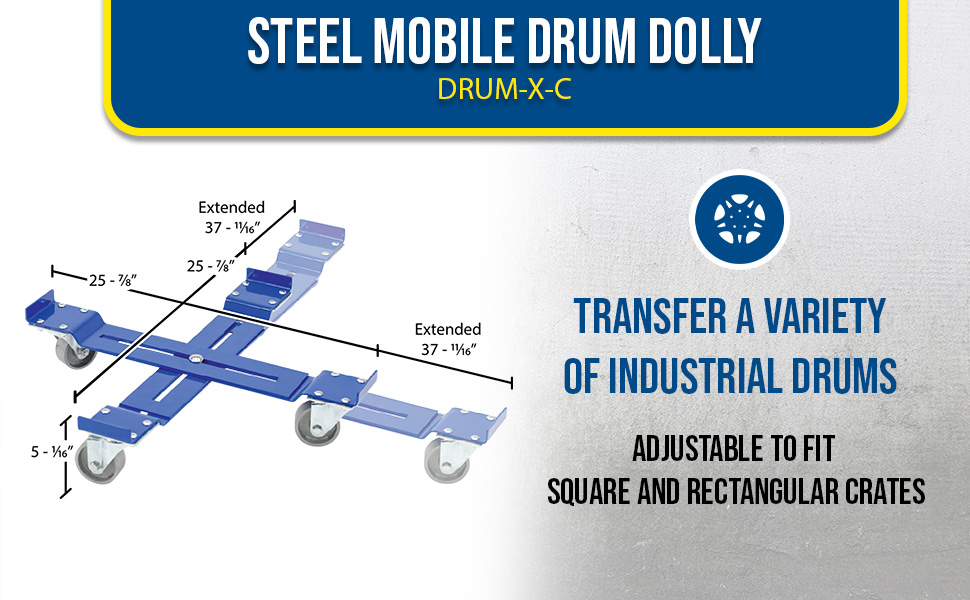 The Vestil Mobile Drum Dollies product family offers a safe, efficient, and cost-effective solution for handling, transporting, and positioning standard 30- and 55-gallon drums in industrial environments. Each dolly is engineered with a heavy-duty steel frame designed to support substantial weight capacities while maintaining easy maneuverability. Available in a range of models, these drum dollies feature durable casters that provide smooth rolling performance across various surfaces, allowing users to easily move filled drums without strain or risk of tipping. Many units include cross-supports and raised lips for added drum stability during transport, making them an essential tool for warehouses, manufacturing plants, and material handling facilities.